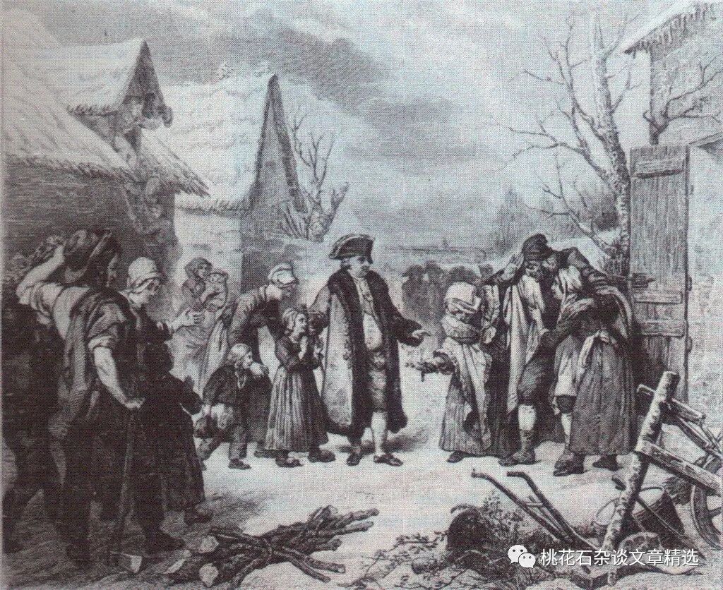路易十六施舍贫民场景,从中也能看出法国平民生活困苦