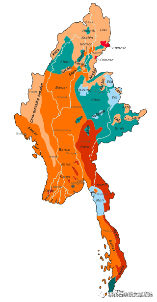 (缅甸主要民族分布图,不过此图的内容并不完整)