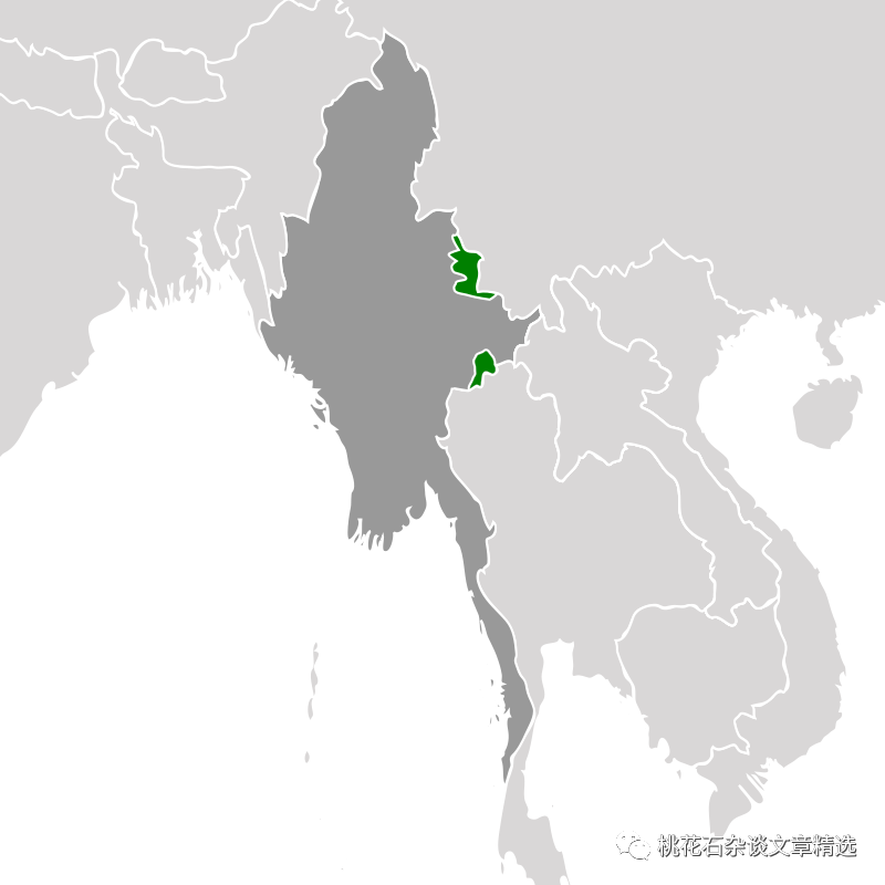 果敢(绿色)是缅甸掸邦(黄色)的自治区