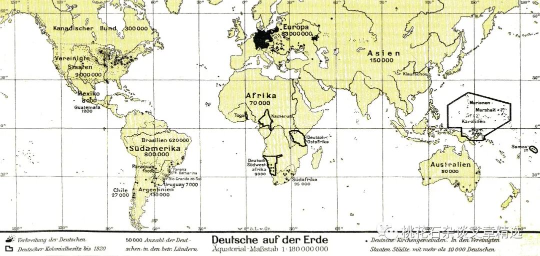(公元1930年代德意志人在全球的分布情况,当时欧洲许多国家都曾有不少德意志人)