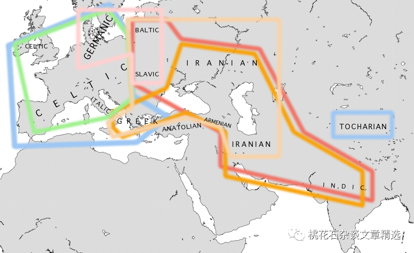 (印欧人在欧亚大陆的分布,主要是依据说印欧语系各民族的分布确定)