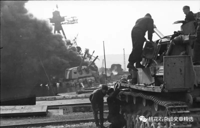 (已经把港口都占领了的德国装甲部队面对正在下沉的法国军舰也无计可施了)