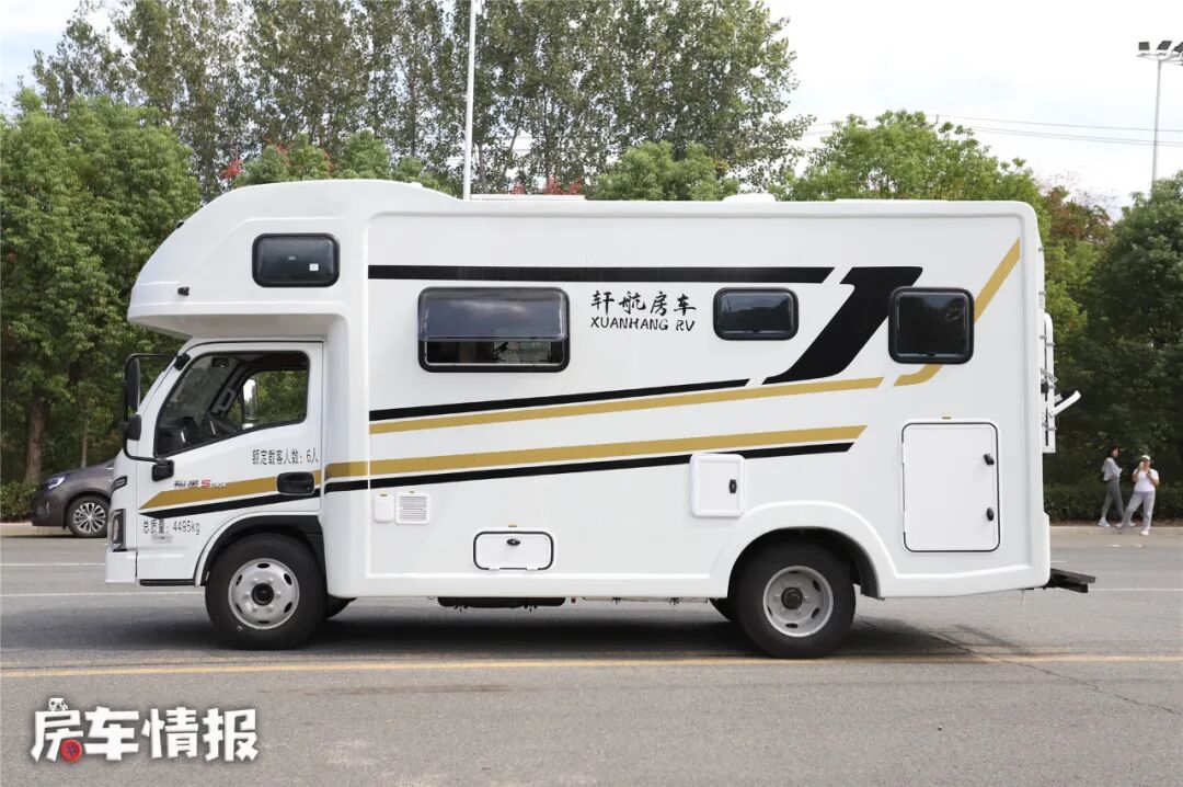 这款新车就是来自于轩航房车推出的一款基于上汽跃进S100底盘所打造的轻卡房车,同样是轻卡房车,但是这款车的额头区采用了流线型的设计,所以整体的外观造型看起来还是挺年轻时尚的,整体的长宽高尺寸为5935*2350*2880毫米,符合在蓝牌C本的驾驶规定之内。