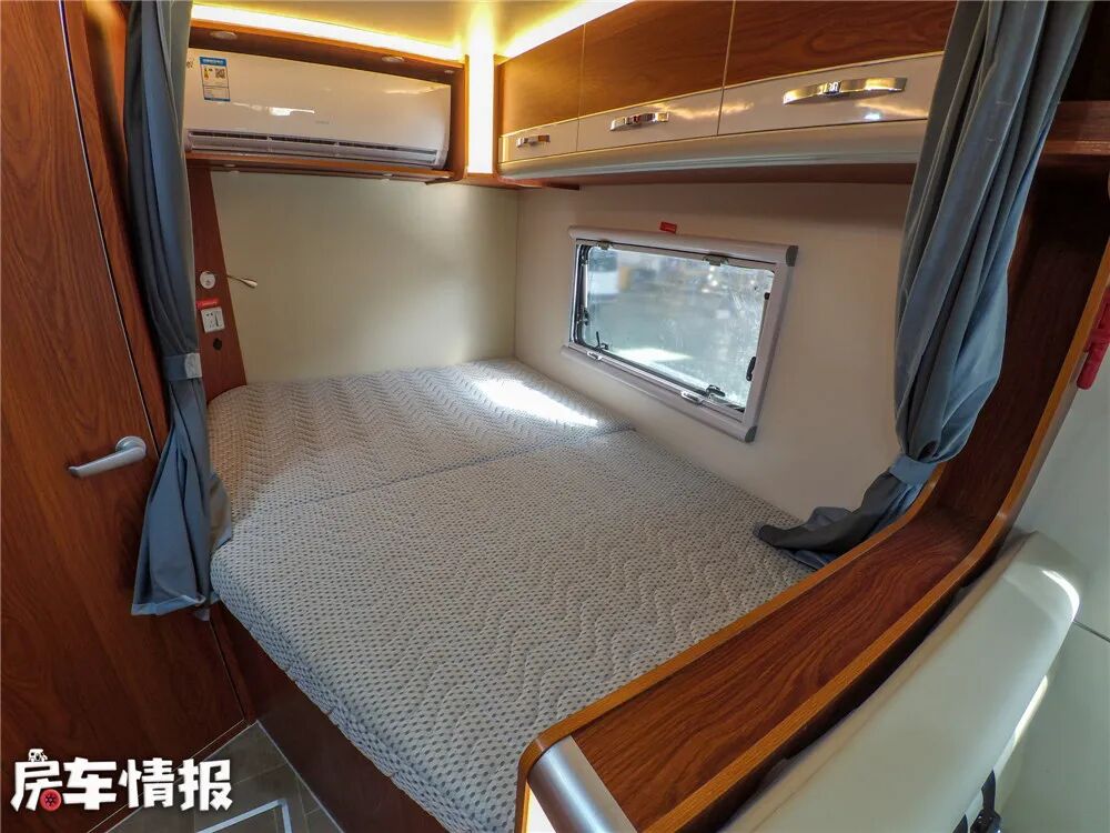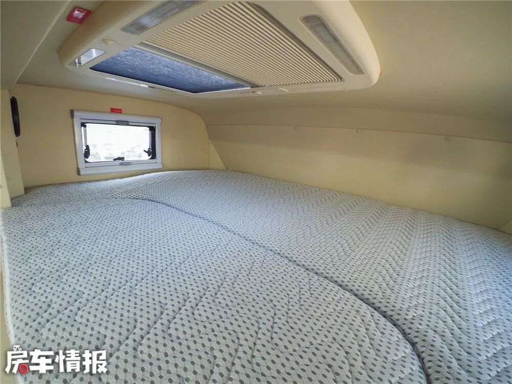 车尾部还提供了一个休息区域,是一张纵置双人床,尺寸中规中矩,睡下两名成年人没有问题。