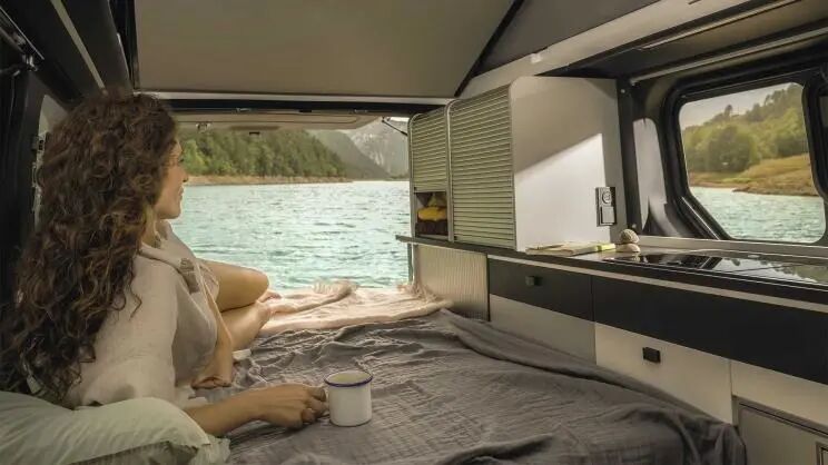 此外,该车配备了一个设备齐全的厨房,包含一个双炉灶台和一个水池,还有一个49升的冰箱。车内通过组合变换,还可以提供一张餐桌。当然,你也可以把车外的伸缩遮阳帘打开,享受在户外的野餐。