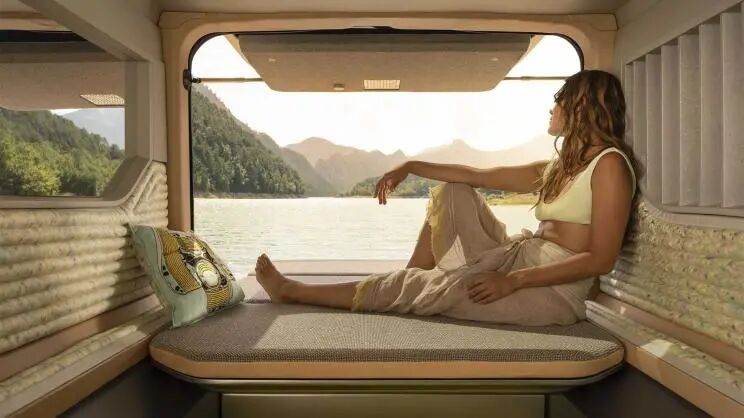 这款车型设计的特别之处在于:车厢内部的尾床是可以向外拉伸的,罩好防蚊帘就可以坐在车外欣赏美丽景色了,供露天放松体验。当然,床也可以变成一张长椅。