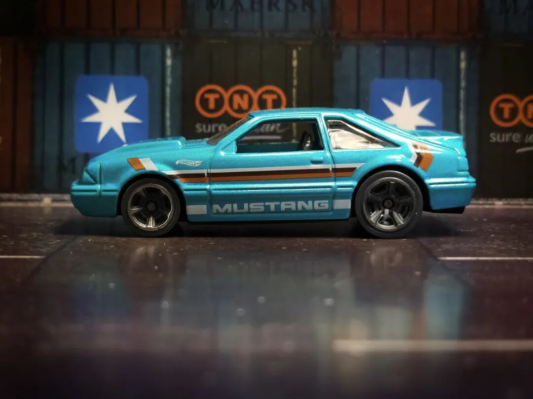 在一堆集装箱面前的风火轮1992年版福特野马