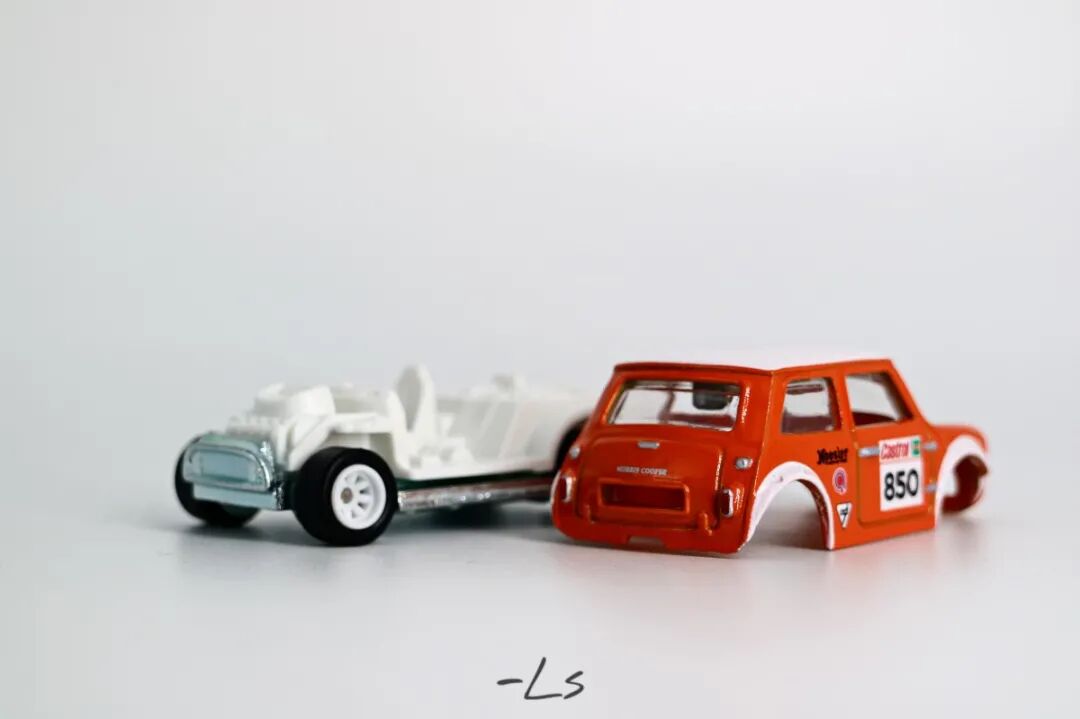 和上面的迈凯伦同一套装中的Morris Mini,可以拆开车壳的设计增加了其可玩性。