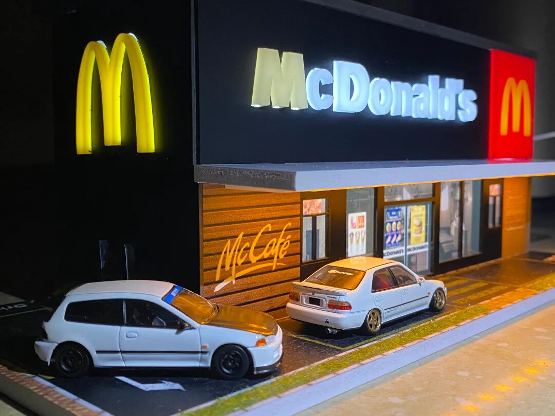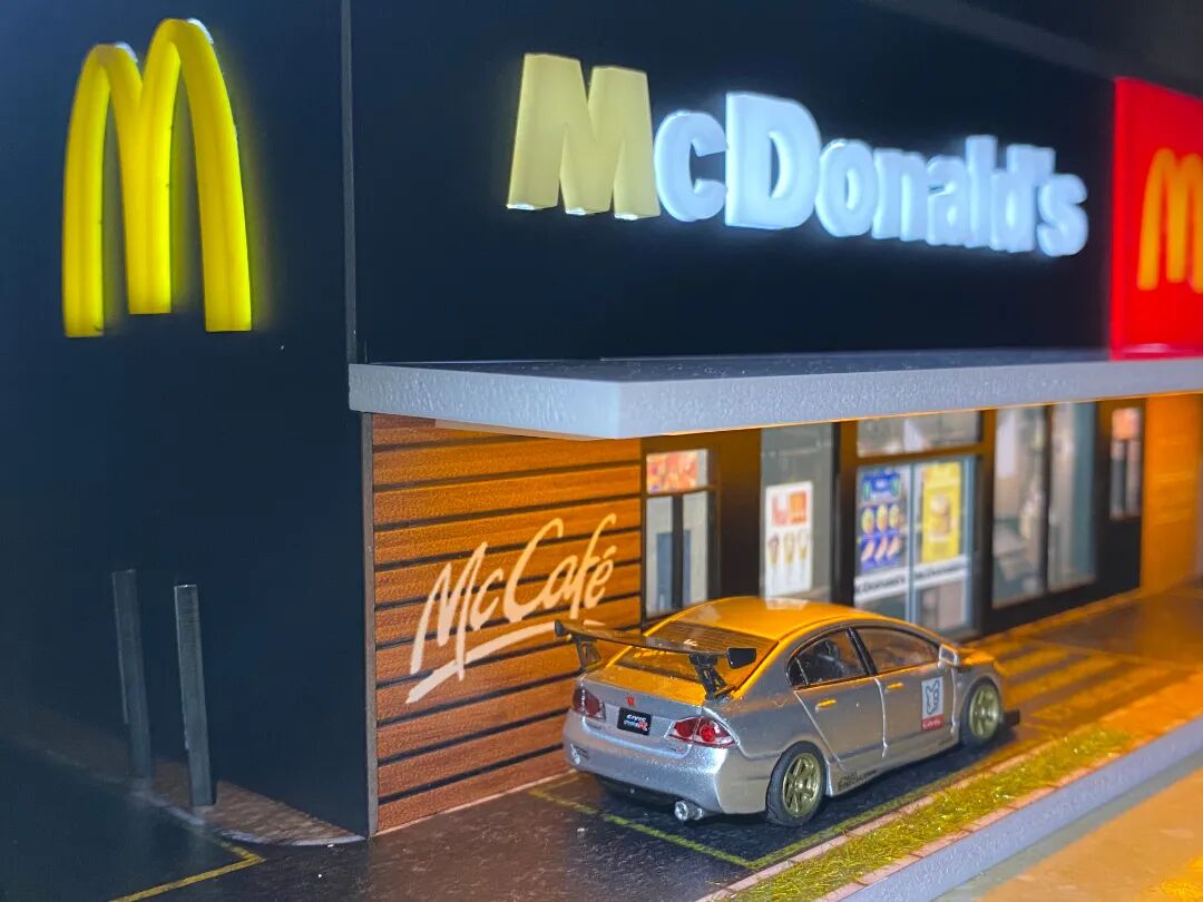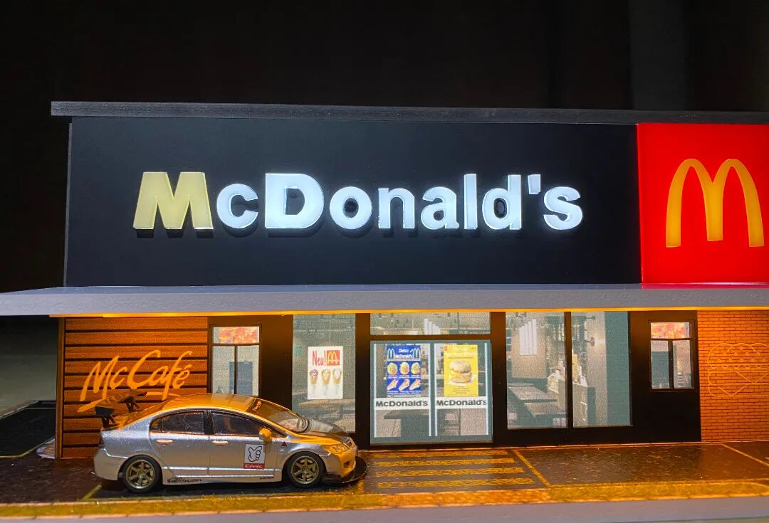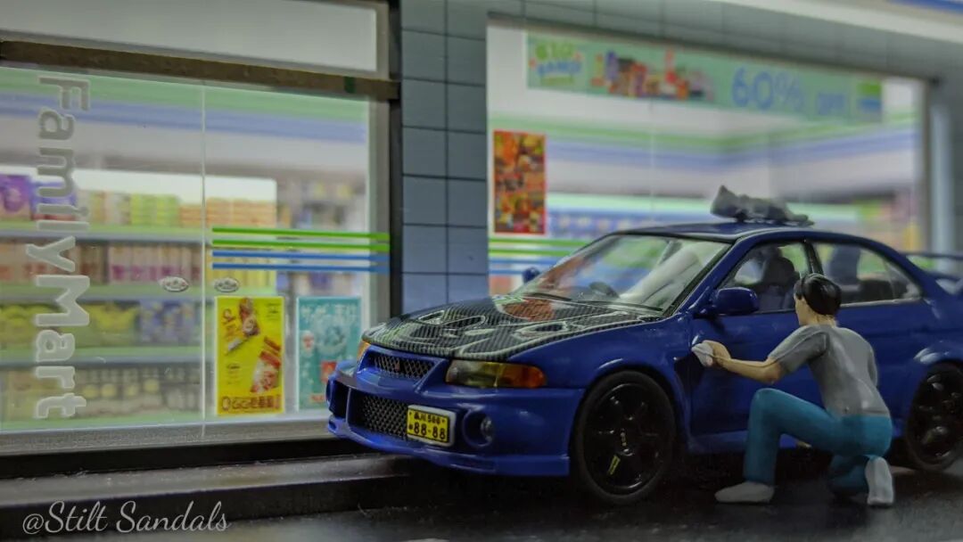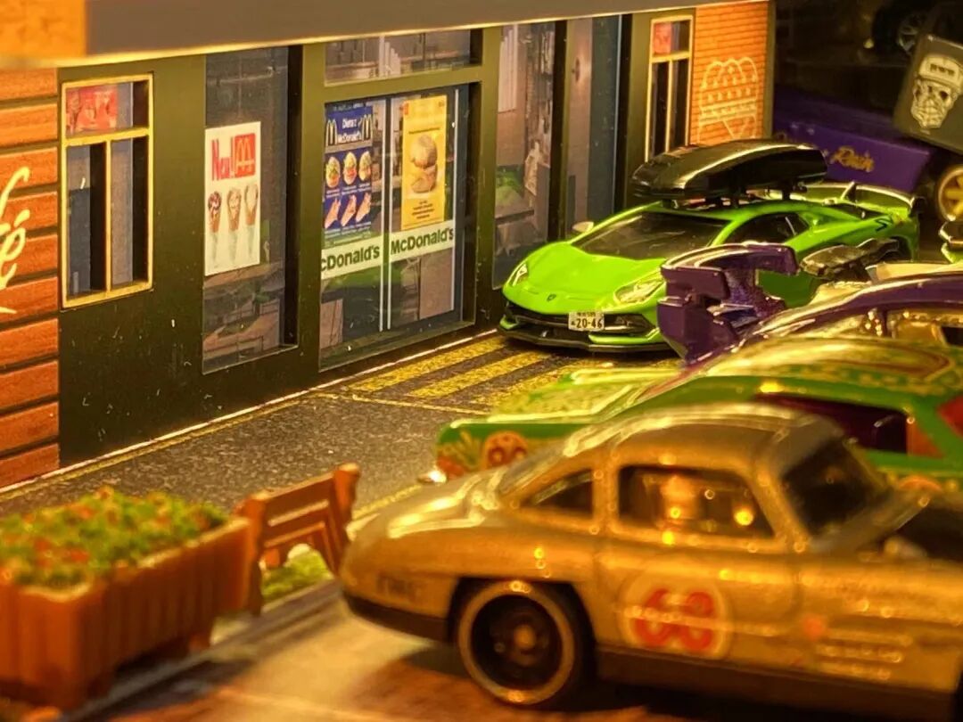 图中的罗森便利店场景也是我个人非常钟爱用于拍摄的,自带灯光的它加上一盏顶灯即可做出相当不错的拍摄效果!