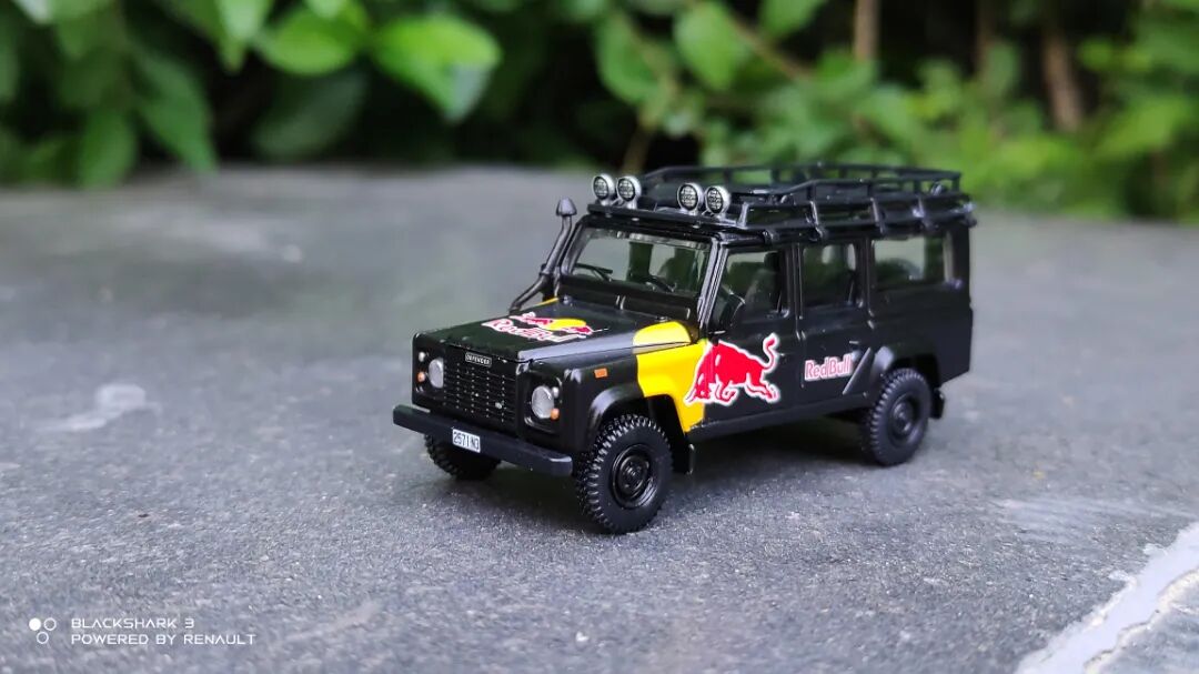 这台Land Rover Defender的红牛涂装并非虚构,而是红牛的活动宣传用车,主要用途是在大型活动中运送DJ台以及音响设备。