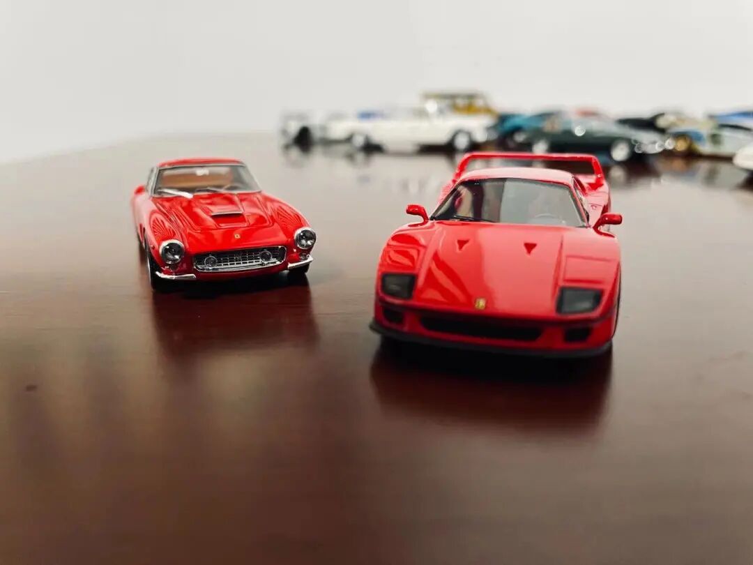 这两台法拉利有亿点精致呀!有谁能告诉我是什么品牌的呢?尤其是左边的250 GT SWB这个前中网细节刻画精细程度很高,盲猜是树脂车!