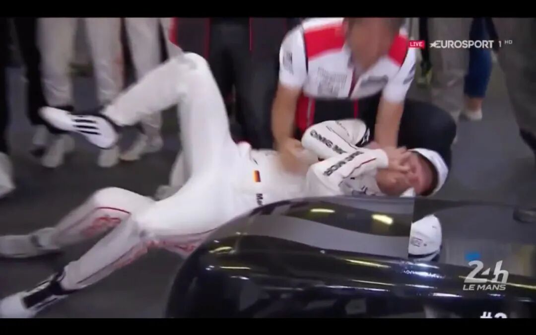 看到这一幕,原本准备庆祝胜利的丰田Pit房工作人员们都不敢相信自己的眼睛,而保时捷的Pit房中车组先从一脸懵逼到超越后的庆祝,突然就成了冠军的车手们甚至高兴的在地上打滚