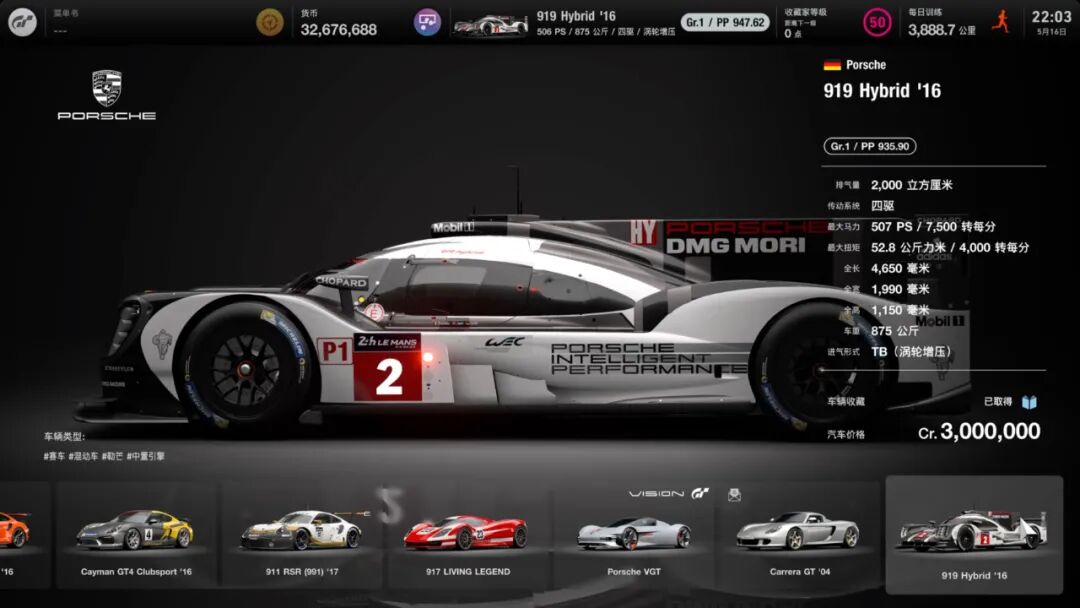 游戏中数据参考,更换软胎后PP值高达947.62,LMP1原厂状态下超高的极限和数据让这台车几乎已经成为了整个《GT赛车7》真实存在车型的数据天花板之一了。