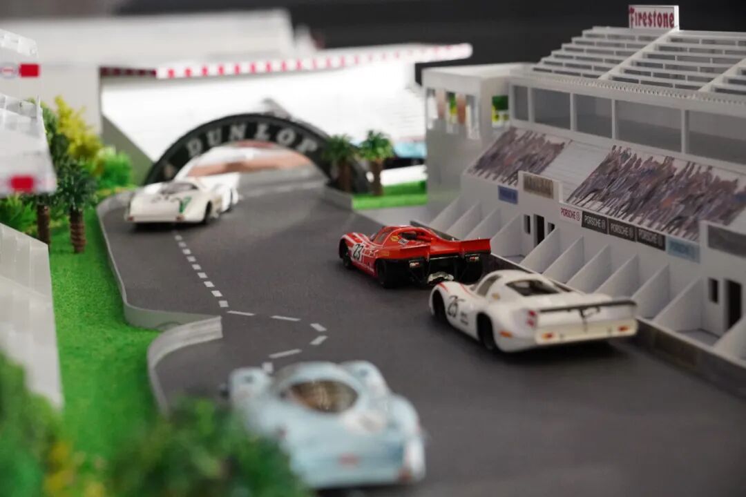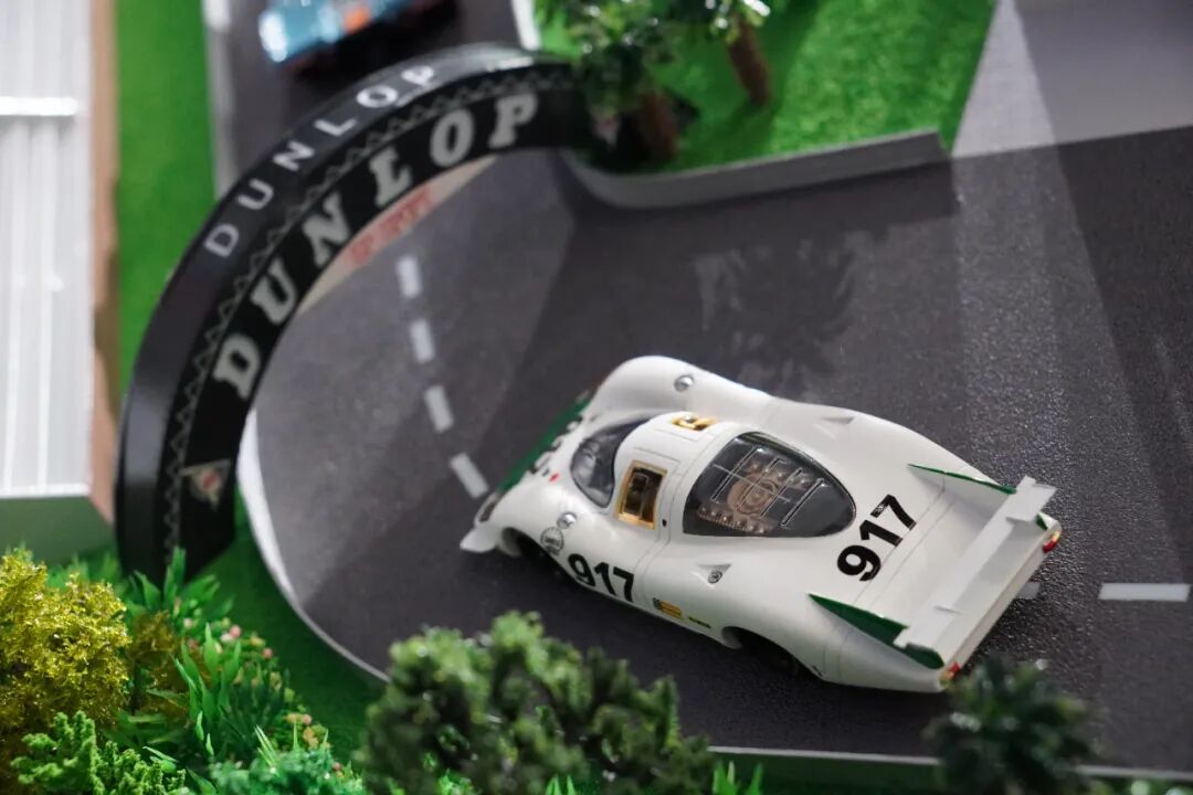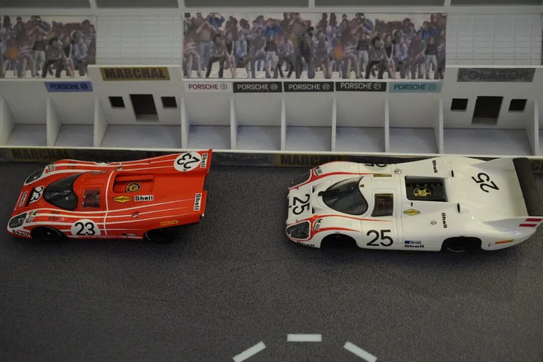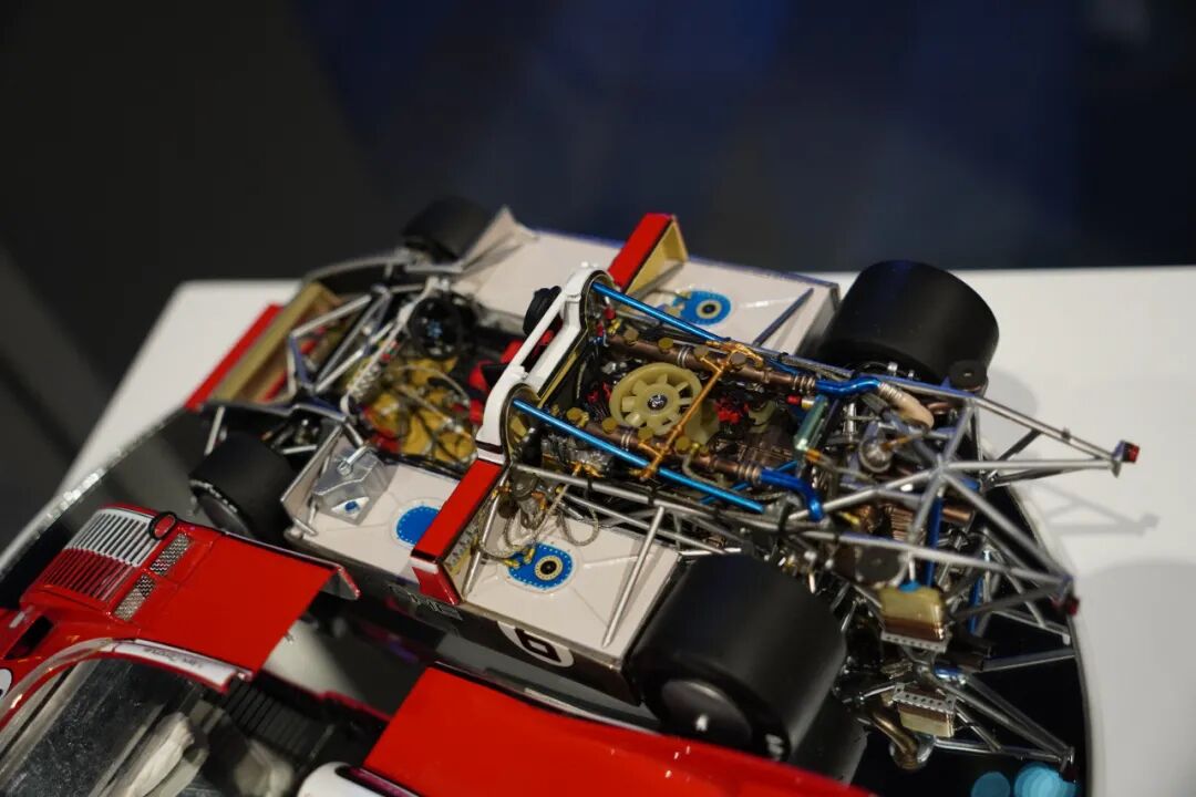 除了场景模型,一侧还摆放了数台917赛车模型,1:18的它们管路细节显得非常精致,更多内容详见视频!
