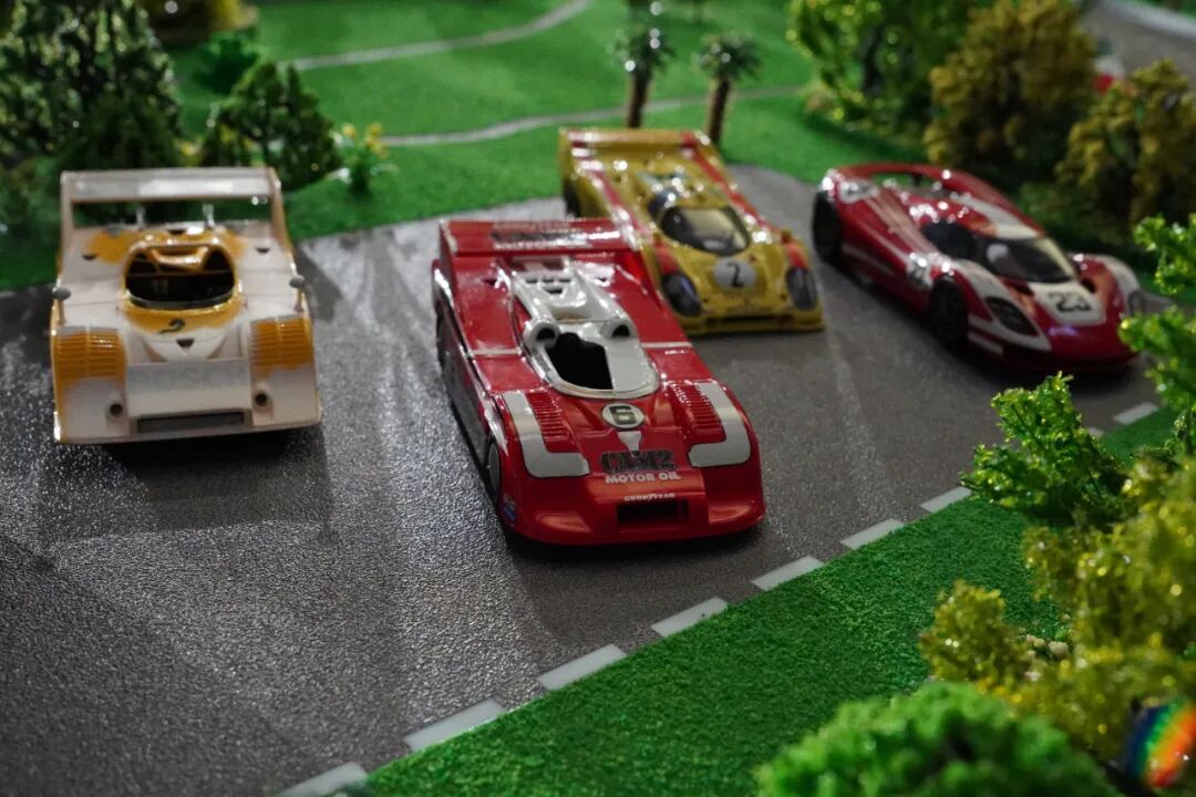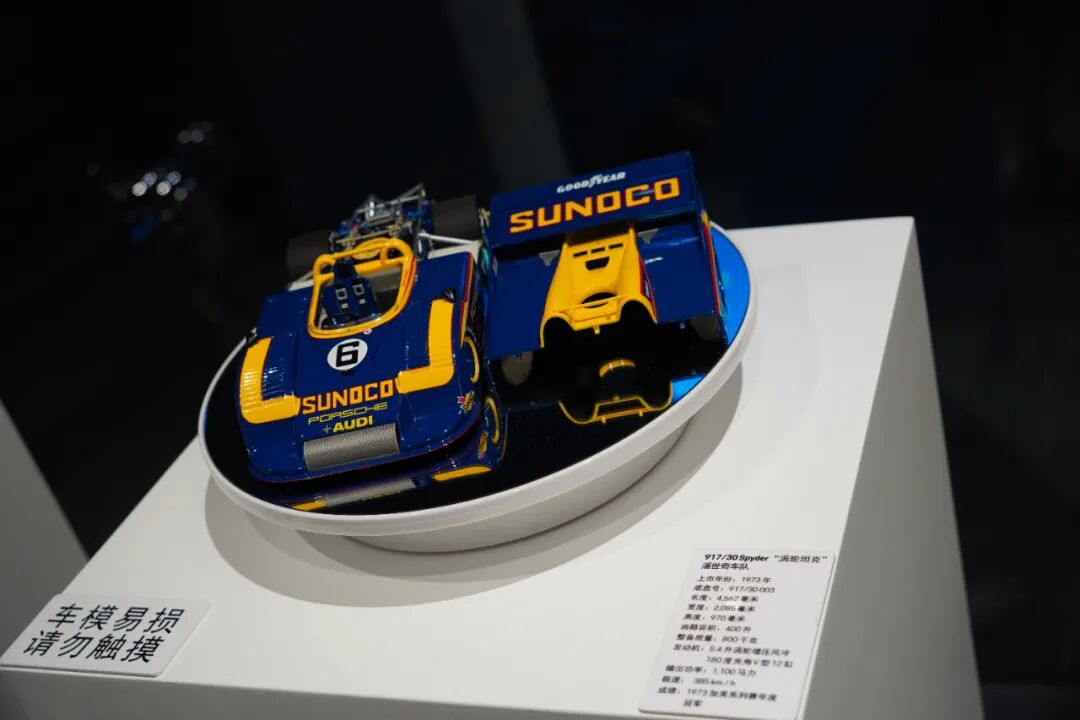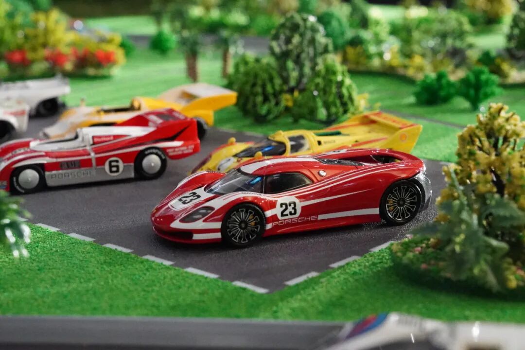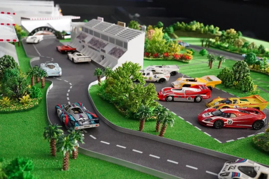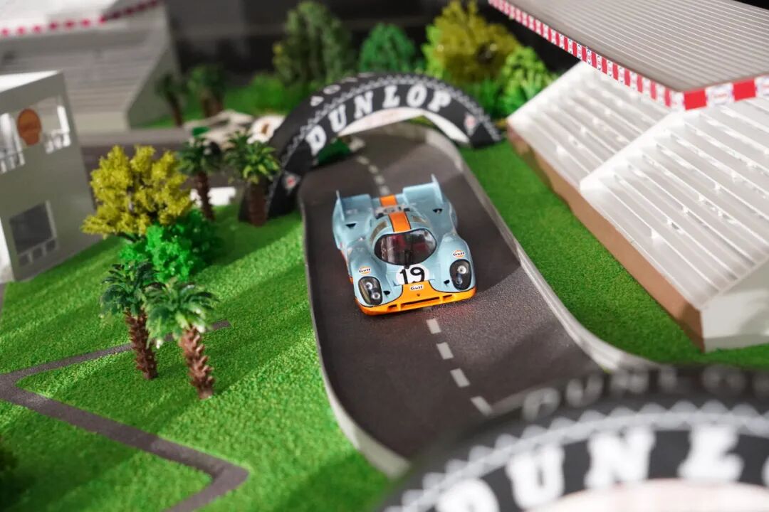 除了场景模型,一侧还摆放了数台917赛车模型,1:18的它们管路细节显得非常精致,更多内容详见视频!