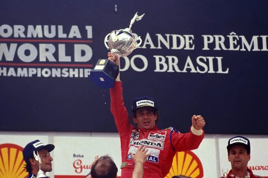 (1991年圣保罗大奖赛领奖台上的塞纳,图源网络)