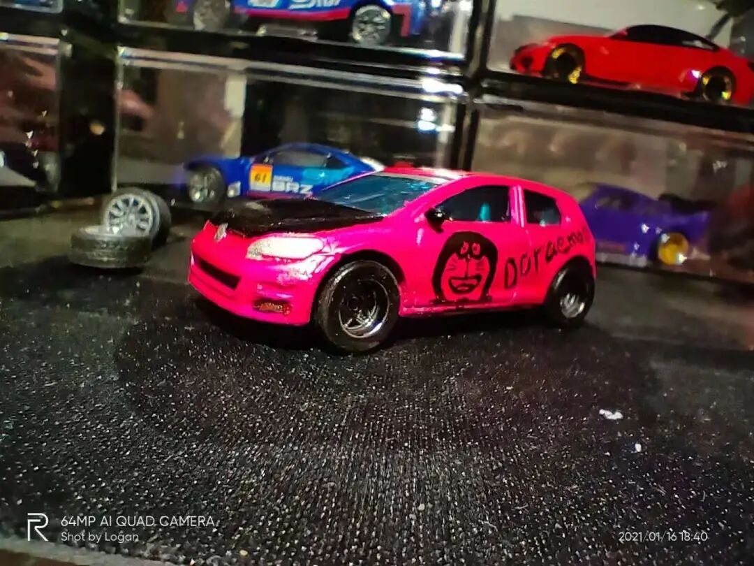 全是粉色系的小车,下面这台高尔夫7应该是自涂的车型了,猛男专属!