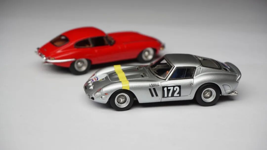 法拉利250GTO,修长的车身仿佛一条银箭!后面的小车难道是捷豹E-Type?