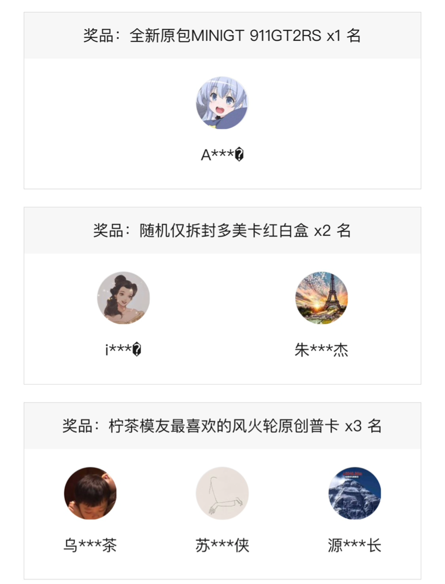 我让我们恭喜这几位朋友,获得了我们柠茶团队送出的汽车模型一份!