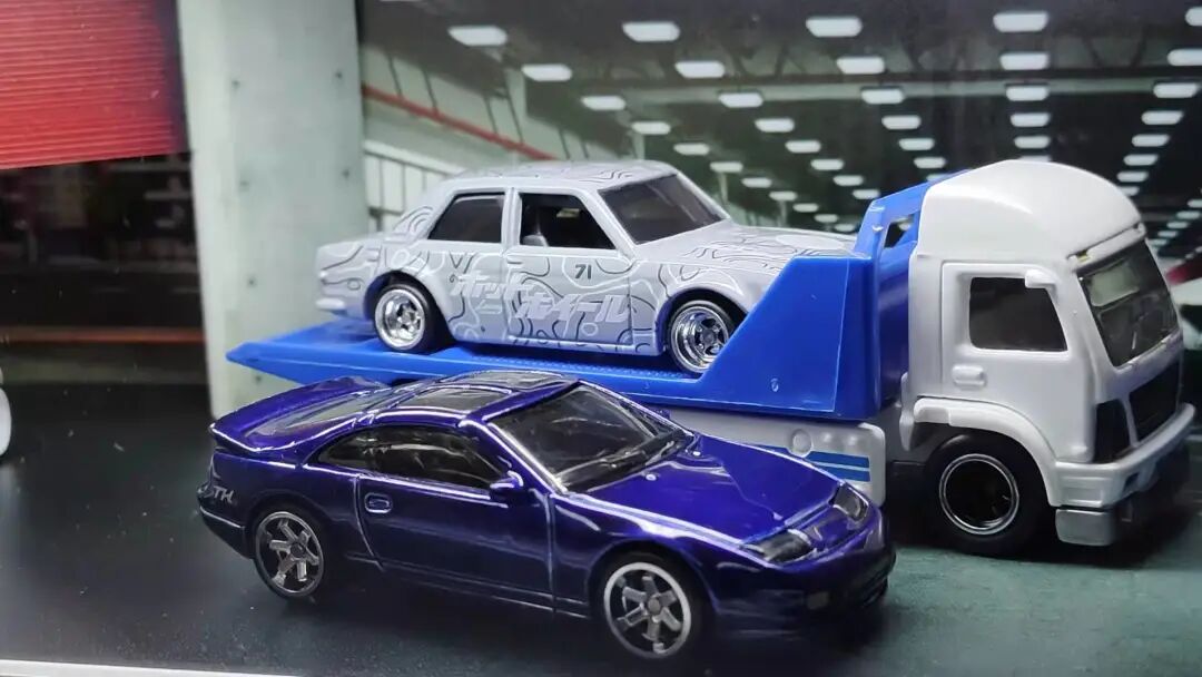 风火轮超宝的日产300ZX,这个漆面果然不一般,而后面AERO LIFT上载着的达特桑510似乎也不简单?
