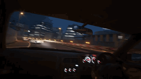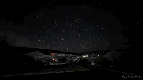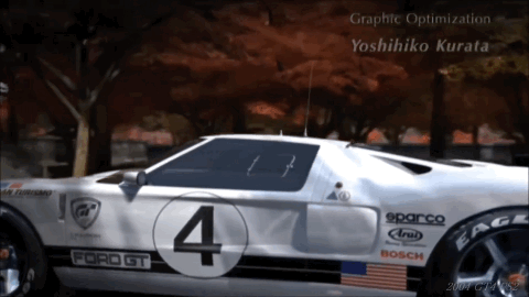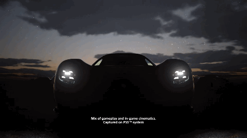 随后镜头切换到了一台亮灯的保时捷917 Living Legend上,这个镜头运镜同GT赛车5中的GT-R开场完全一致。