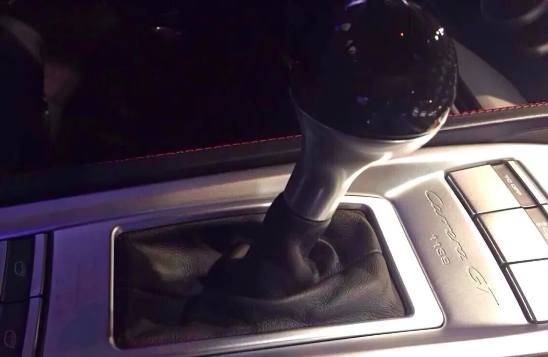 上图中的排档杆头采用的是致敬了勒芒经典车型917K的桦木材质,下图中的排档杆则是在Carrera GT推出第二年后的新定制选项:碳纤维材质排档杆头。