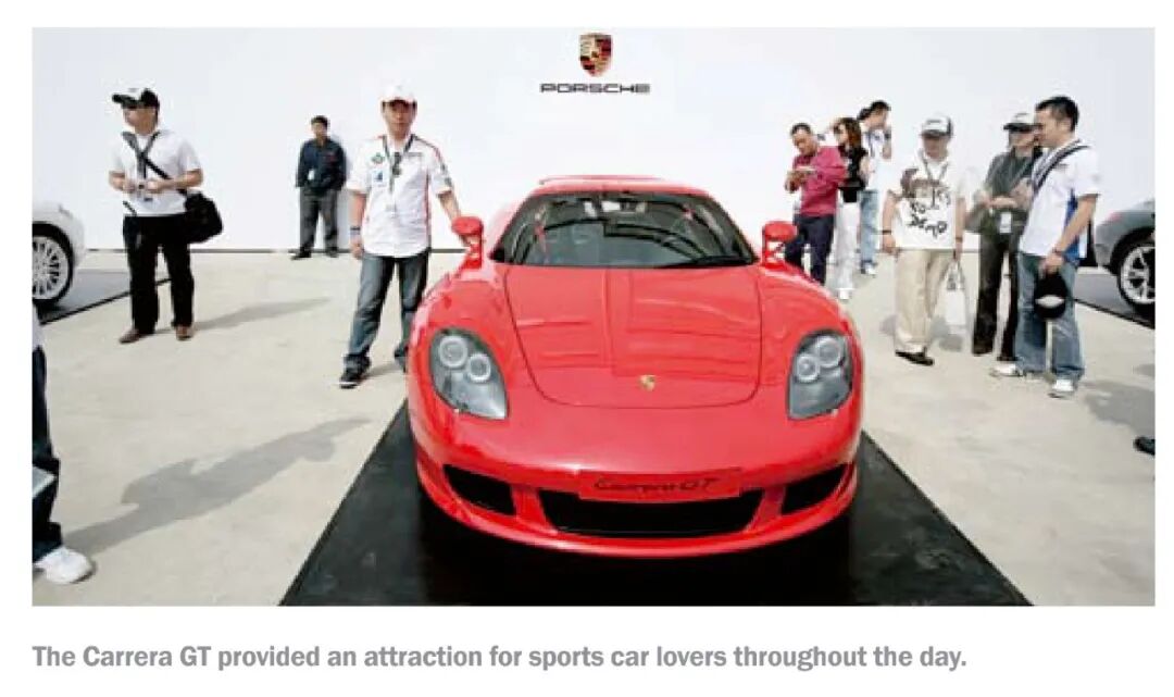 2009年5月10日,北京金港赛道。这台红色的Carrera GT被作为展车出现在了保时捷的官方赛道日活动里。(属实排面)