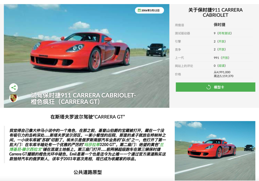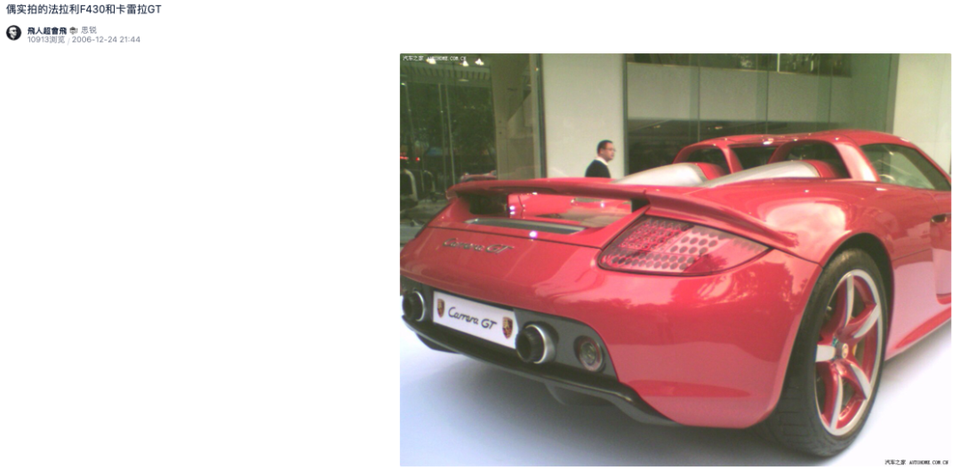 在搜索引擎中,一张图片引起了我的注意:乍一看,图中这台Carrera GT不正是我看到的那台在展厅上吃灰的?就在我准备保存图片时,我多看了一眼。