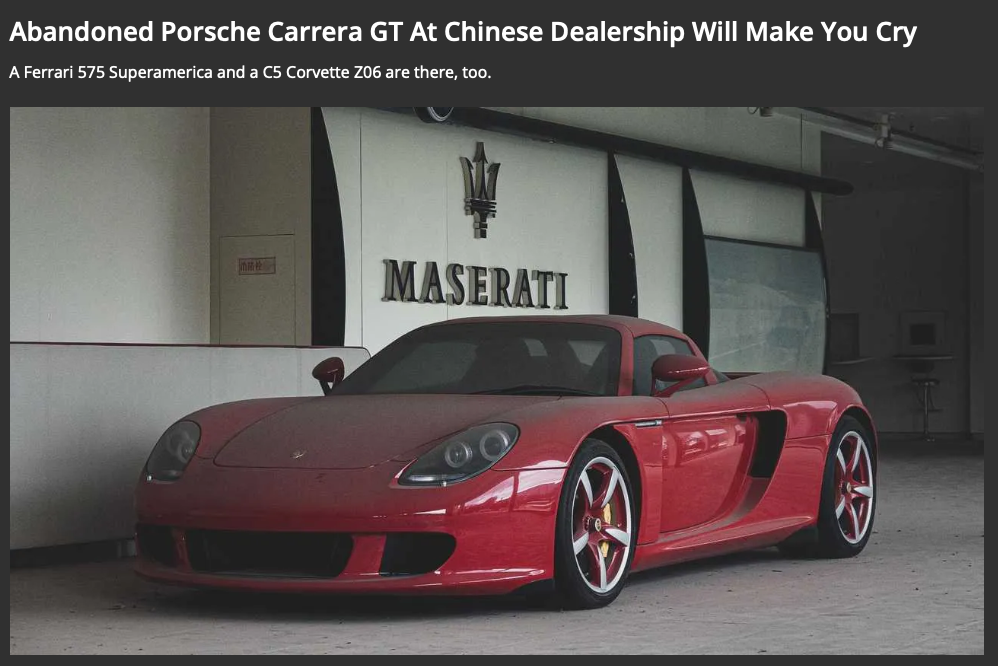 其实一开始笔者也是听闻网络上的消息才找到此处,目前互联网上关于这台Carrera GT的相关信息介绍,也基本上和上图中Motor1网站中介绍的一致,有兴趣的朋友可以去查阅。