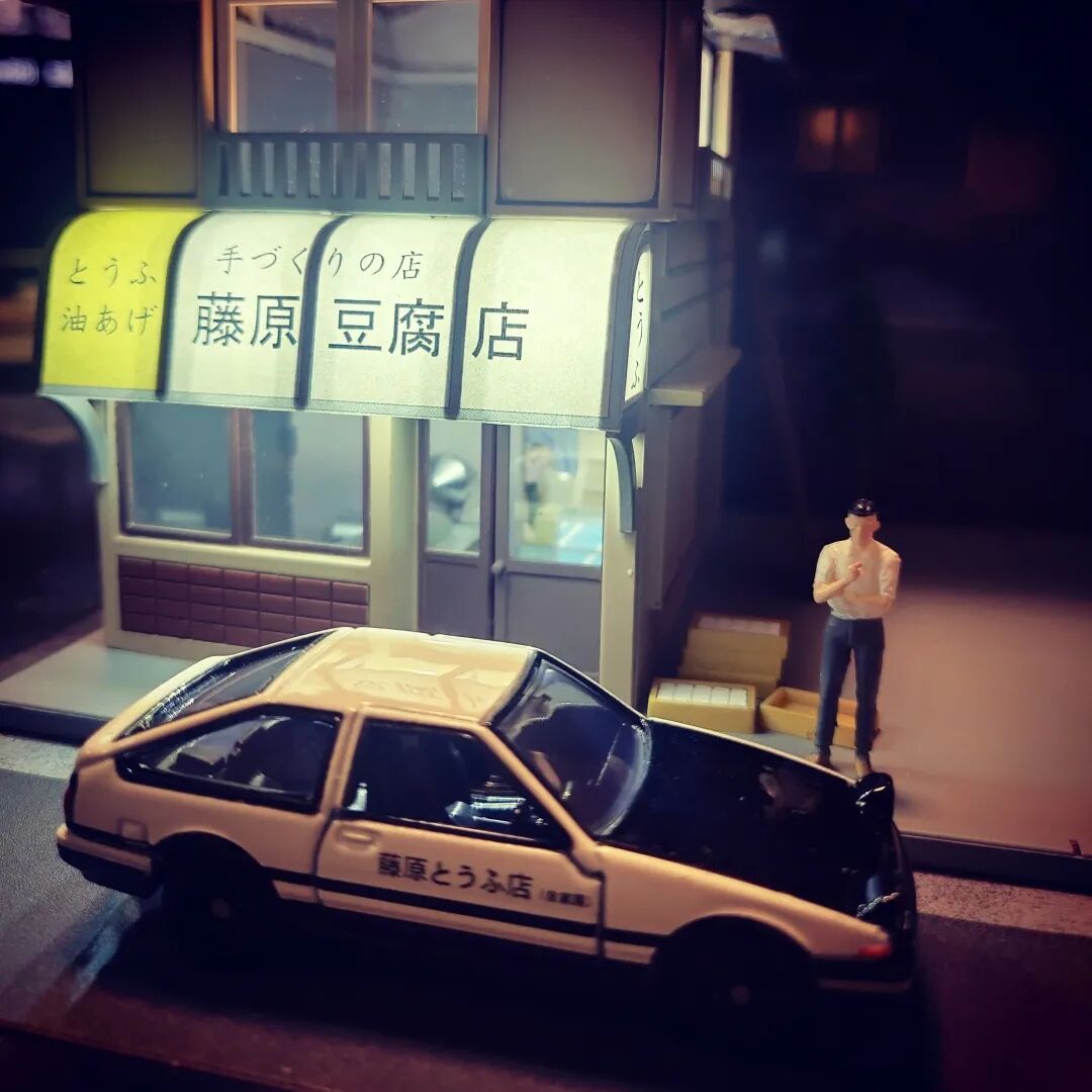 藤原豆腐店还带灯光的场景针不戳,黑盖86旁边还有豆腐的模型,连老板藤原文太都安排上了,这位模友真是《头文字D》铁粉啊!