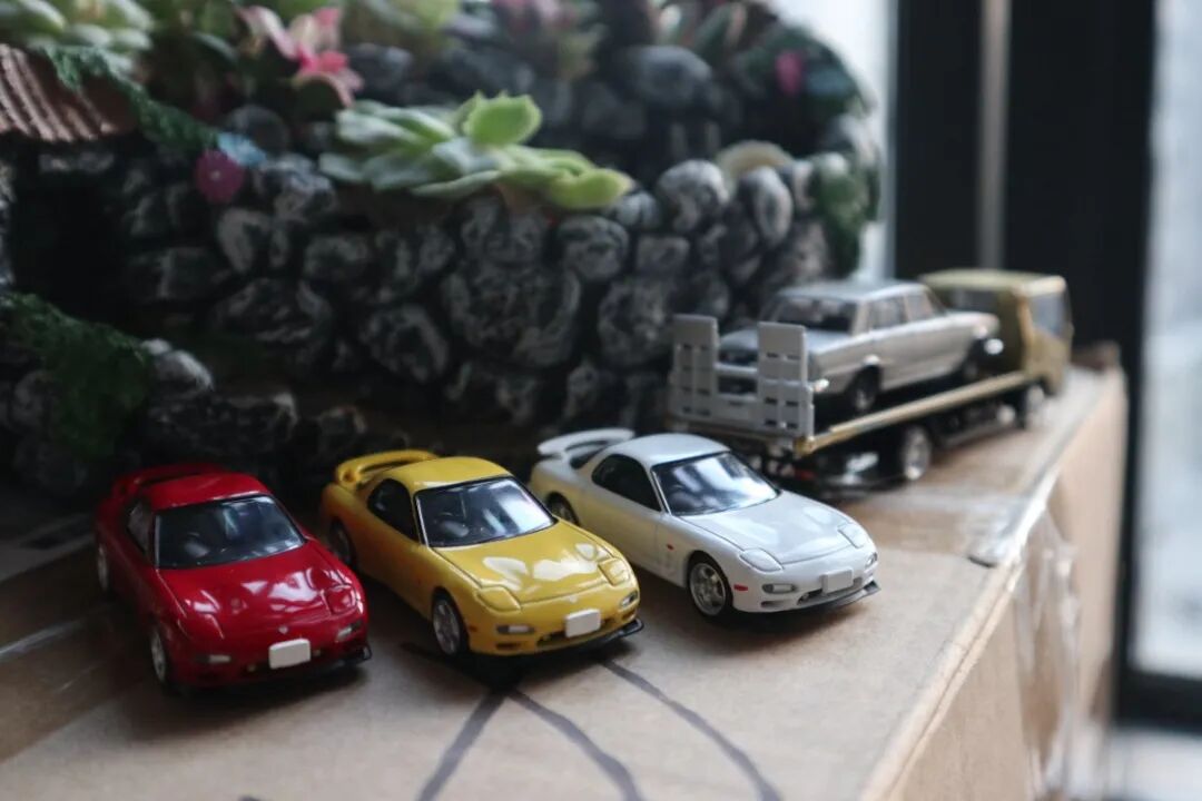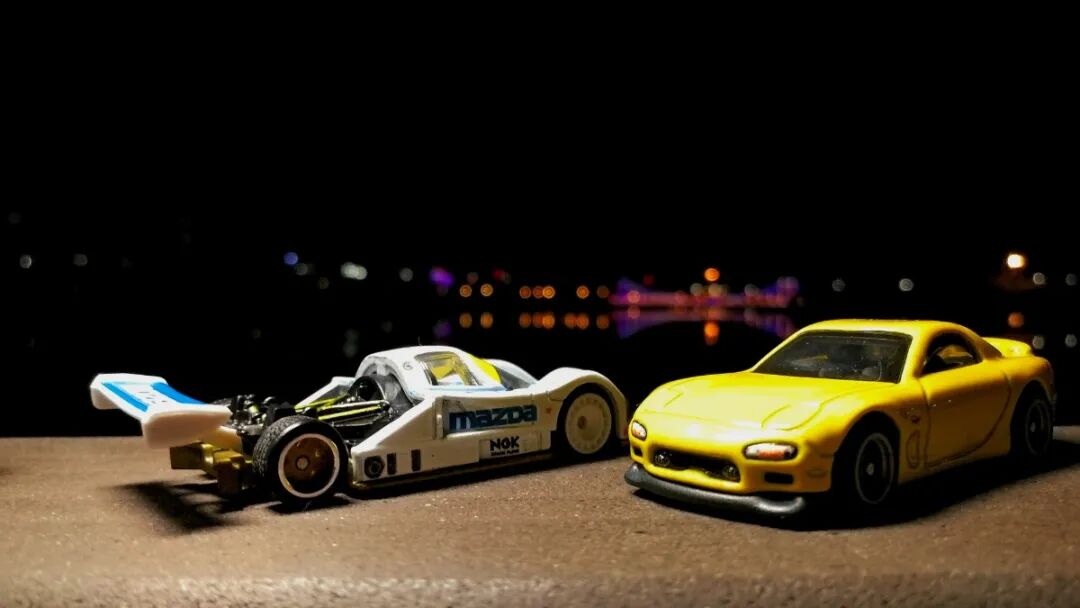 风火轮汽车文化赛道传奇系列的马自达787B,搭配街头调音师系列的RX-7,夜景非常的帅!