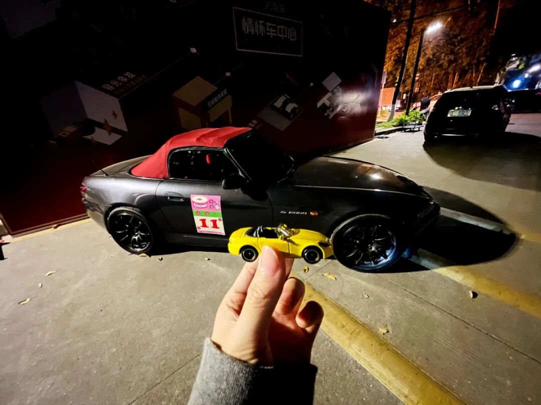 首先一进门便是我们刚刚做过科普的升功率之王——本田S2000,笔者面前这台就是断油转速达到9000转的前期型AP1版本,同时笔者也带来了模型与真车邂逅。附上实拍的启动视频,让大家感受一下声浪!