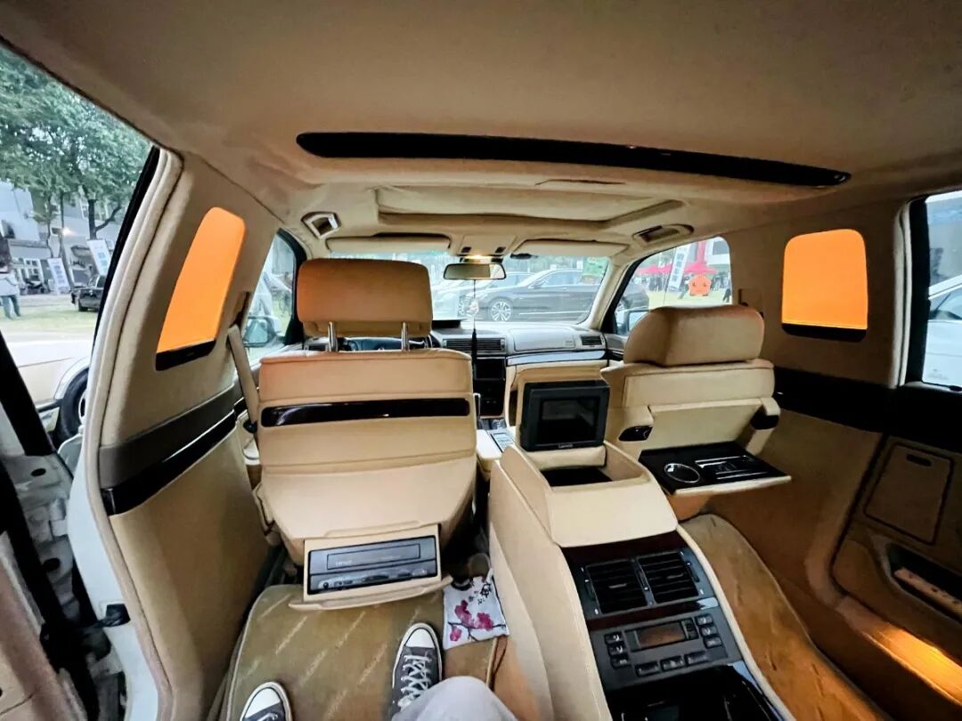 宝马1998年收购劳斯莱斯后推出的搭载了劳斯莱斯同款V12发动机的顶级轿车E32 L7,也是唯一一代有L7称号的7系车型。车主非常的大方,试乘之余还向我们讲述他的故事,车上有着大量的影音系统,随处可见大哥大哥卡带播放器。这台披着宝马外衣的劳斯莱斯无处不散发着凡尔赛的气质。