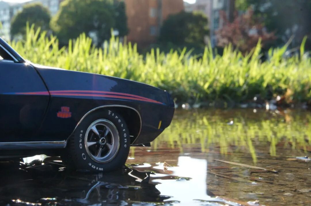 这台庞蒂亚克GTO看起来非常仿真!唯一穿帮的地方可能就是草叶太高了吧!