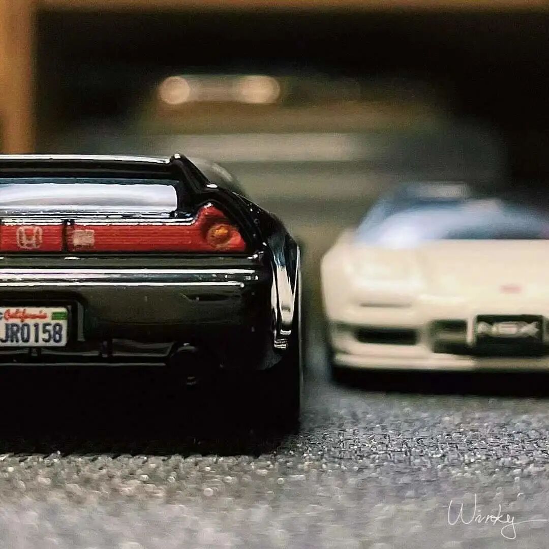 NA1和NA2 NSX-R的同台,而作者在构图上巧妙地选择了黑与白相向而行,似乎在暗示着传承。