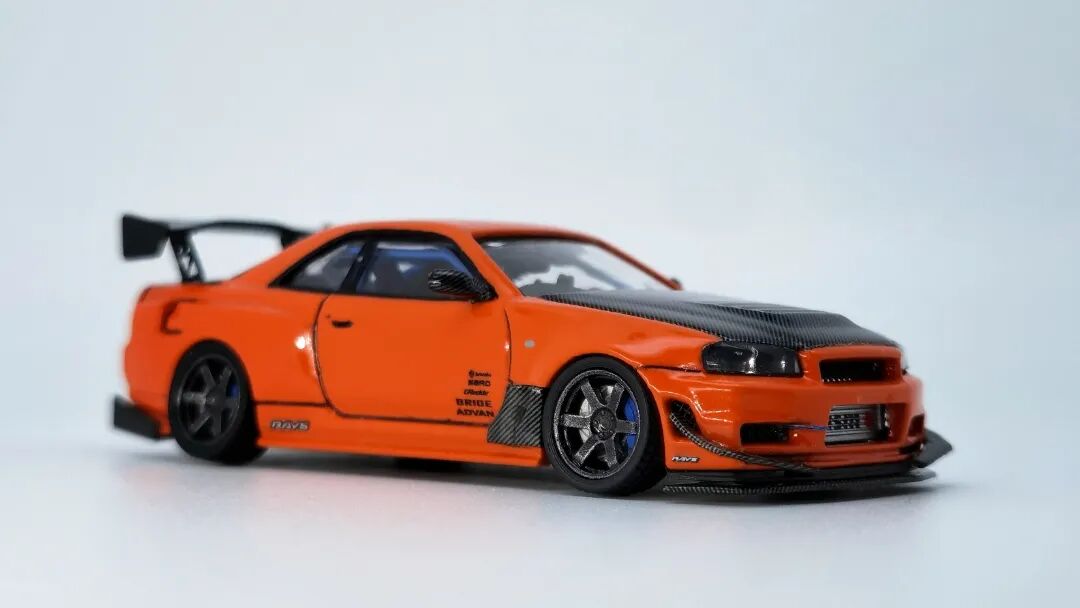 大尾翼+TE37是R34熟悉的味道了。而车头的风刀、全碳的发动机盖以及车身若隐若现的渗线也暗示它不是等闲之辈。