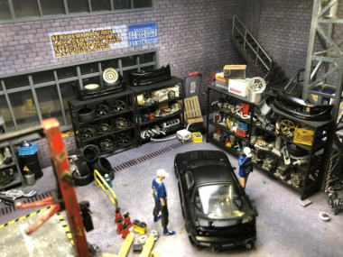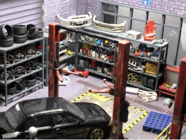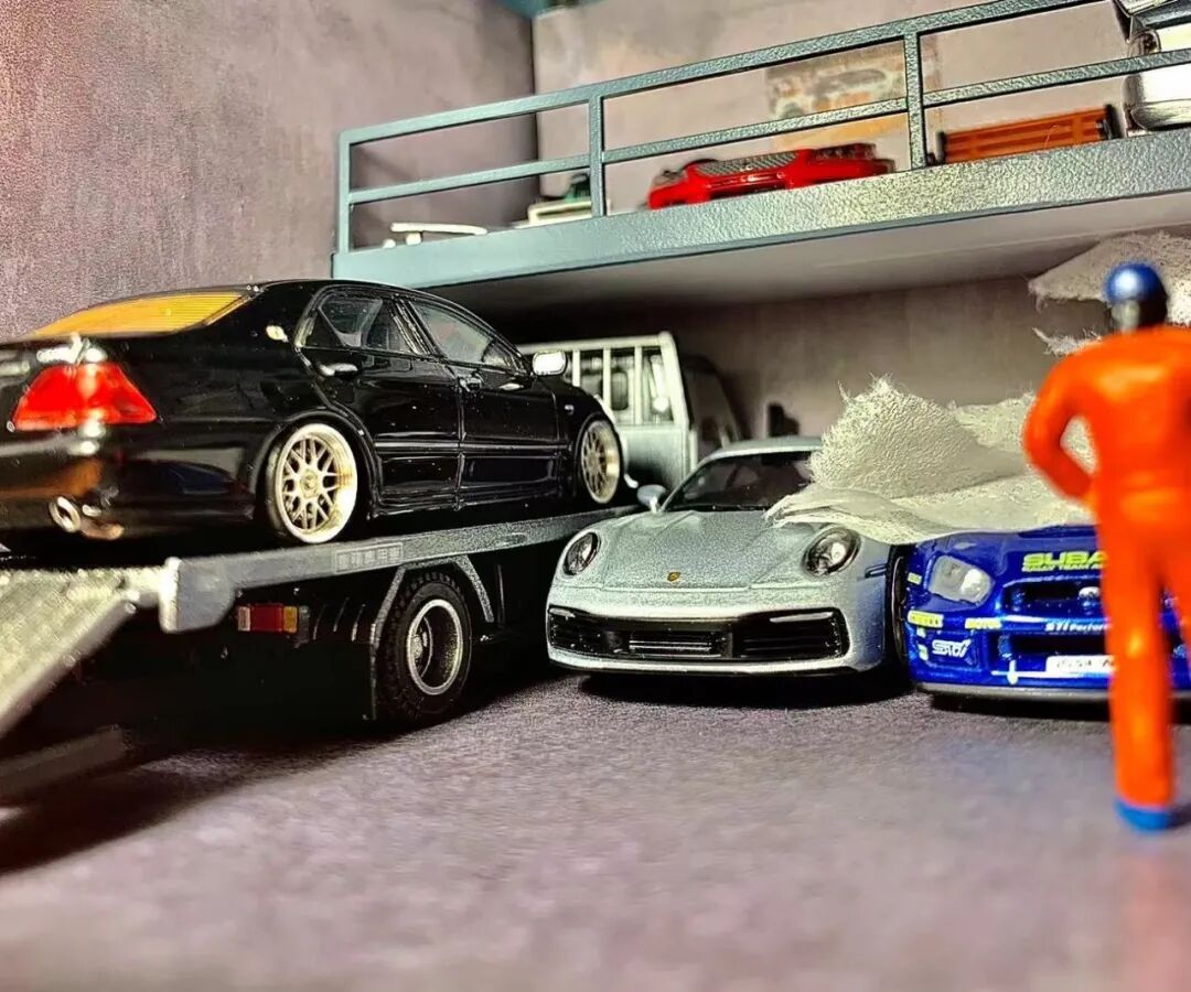 这组改装厂场景属实仿真度拉满了。这么多汽车配件,难道是自己3D打印的吗?