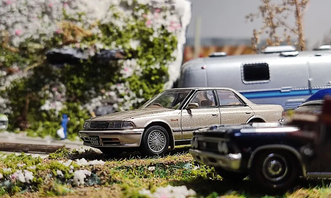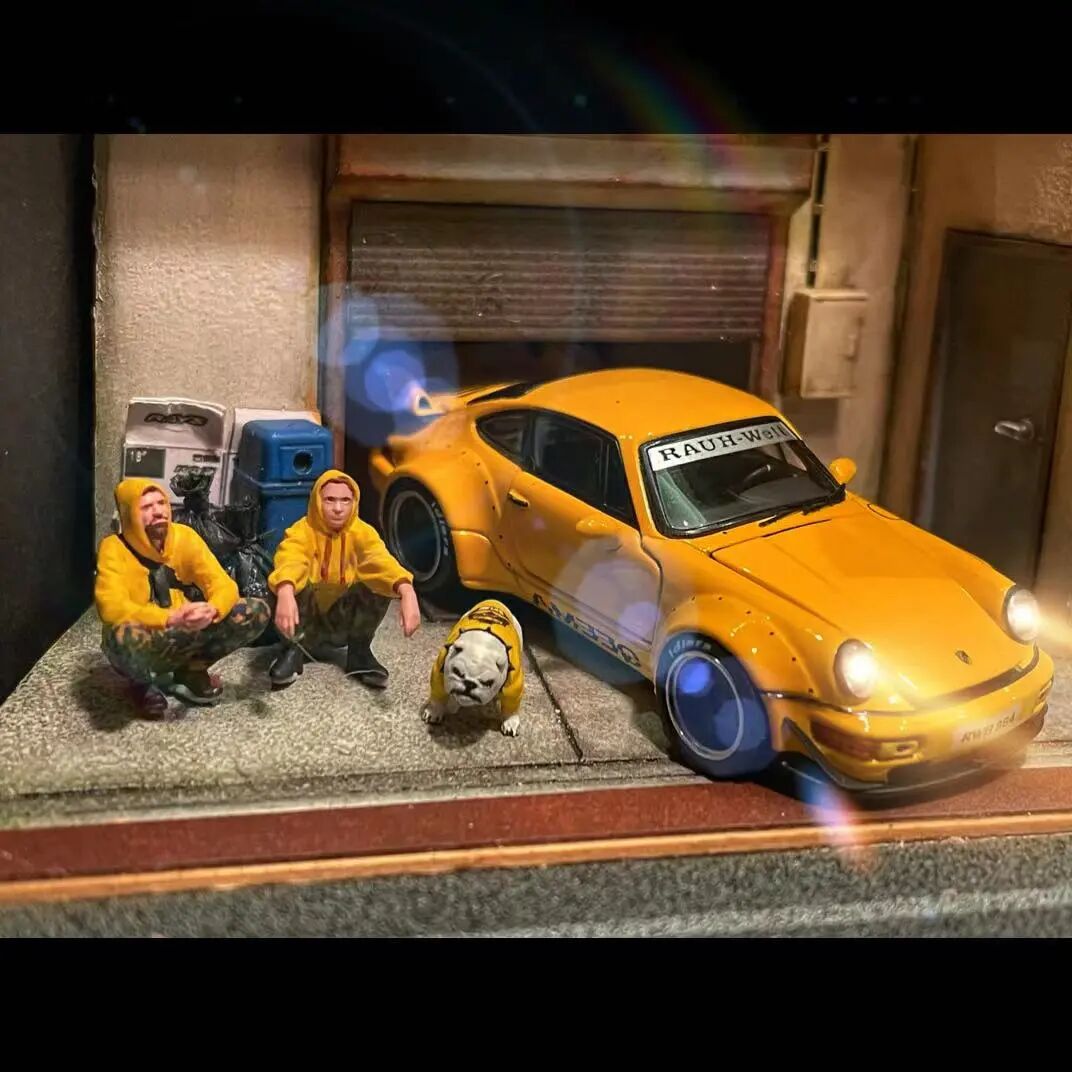 1:64小车拍摄时最难的就是体现以假乱真的感觉,而这位作者巧妙的利用背景将气氛烘托得极其真实。