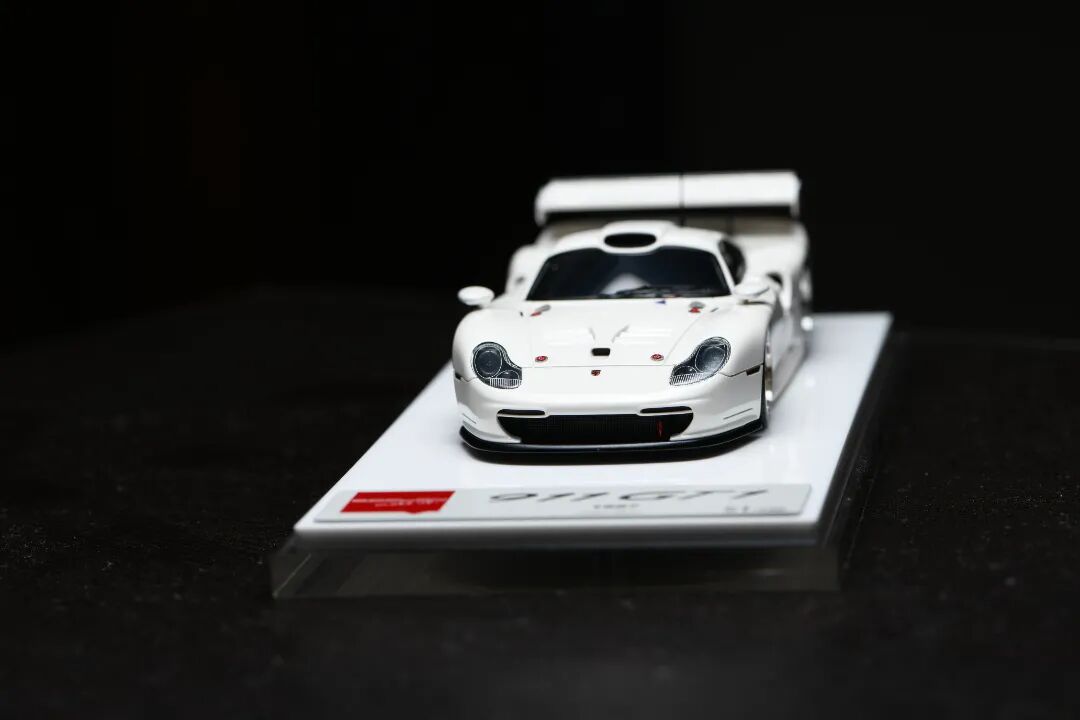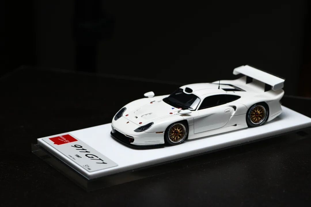 看到这个水滴头灯,我激动的心就停不下来了!这是一台Make Up 出品的保时捷911 GT1 1997年版,不仅有精细的做工,光亮的喷漆和细节拉满的BBS轮毂!