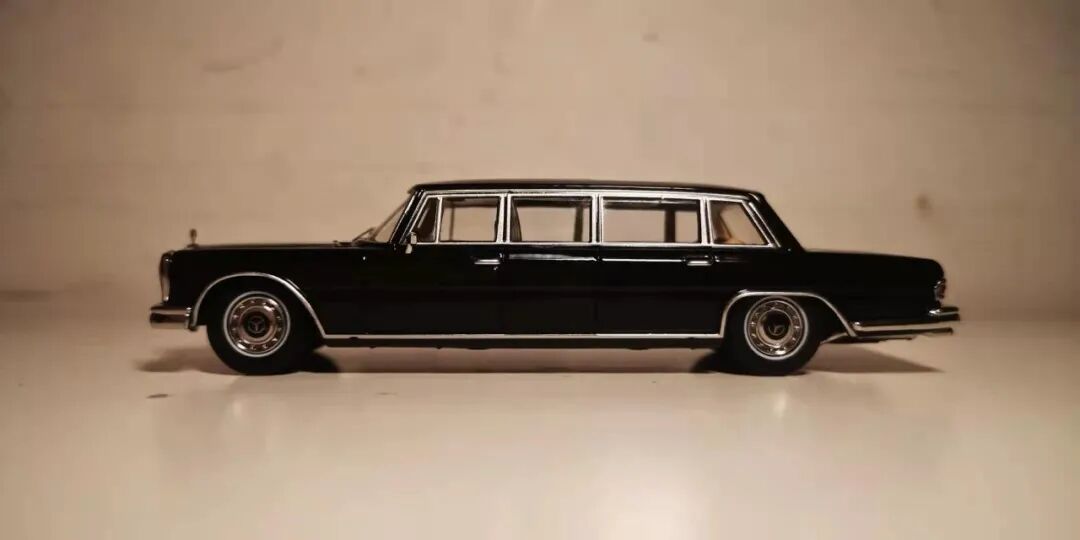 这是一台奔驰普尔曼W100,从侧面看就可以发现车头其实是略微往上仰的,从气势上就碾压了大部分轿车!