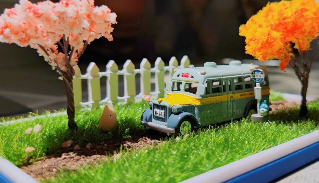 很可爱的一台校车,还搭配了一组应该是自制的场景?公交车牌应该是来自微影,仔细看,还有龙猫!