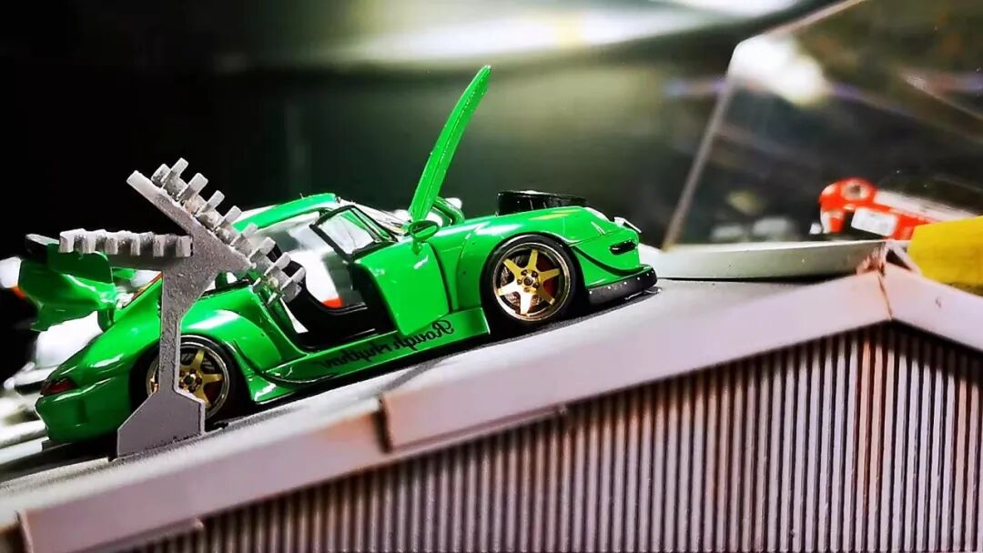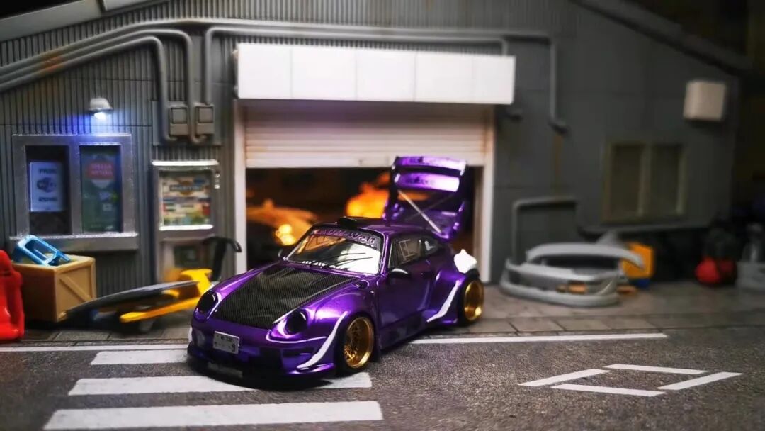 这个RWB改装厂房的场景属实精细度可谓拉满,恰到好处的灯光显得自然且合适。