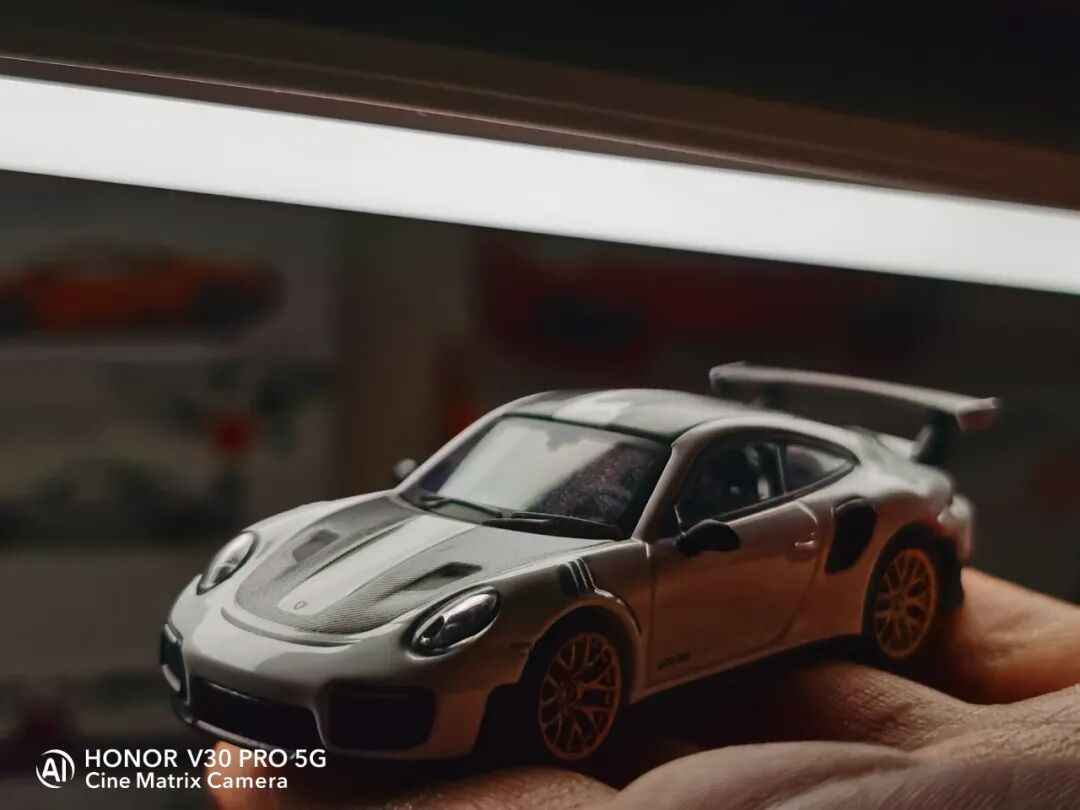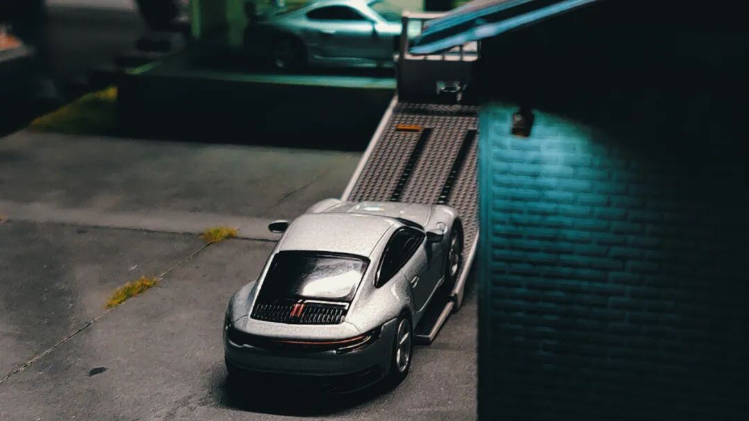 GT银的保时捷992在这种弱光的场景环境下反而给人一种十分深邃的感觉。