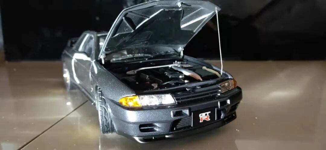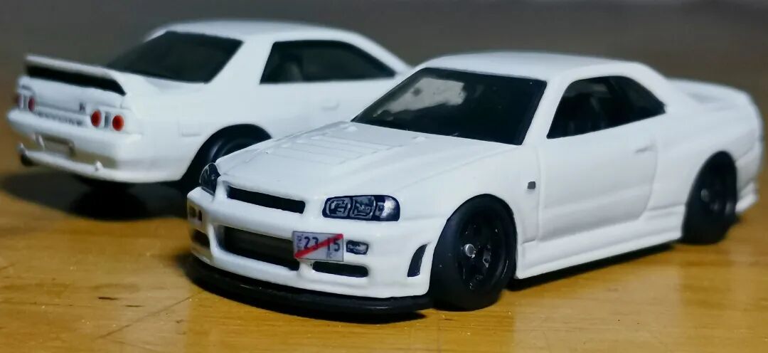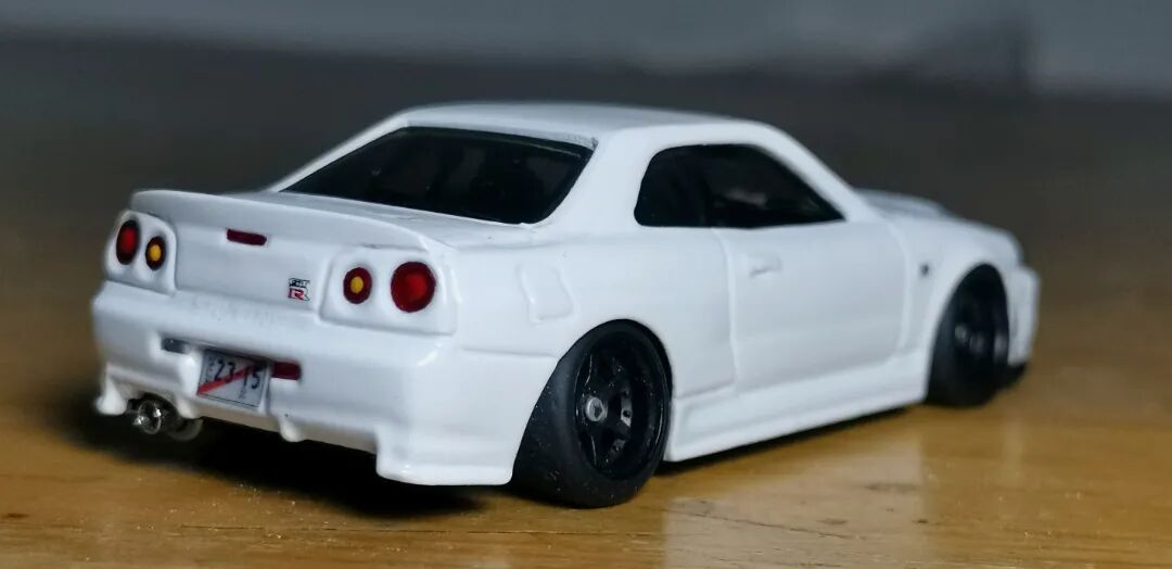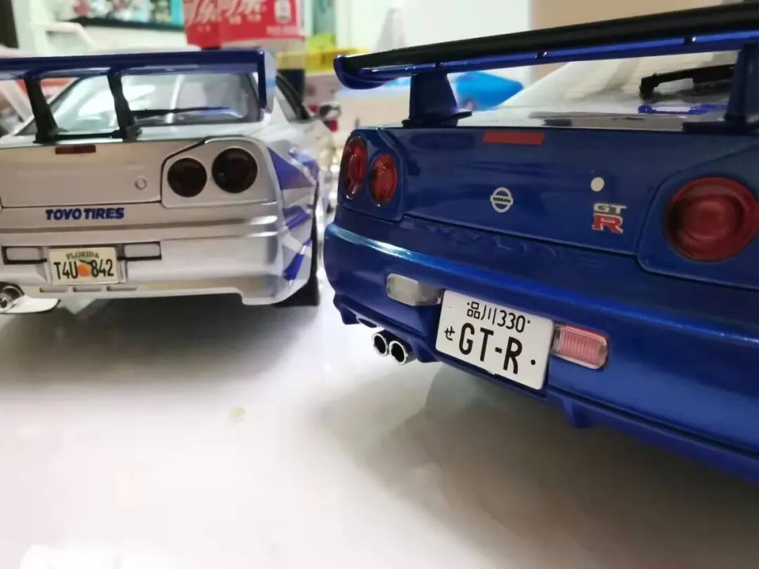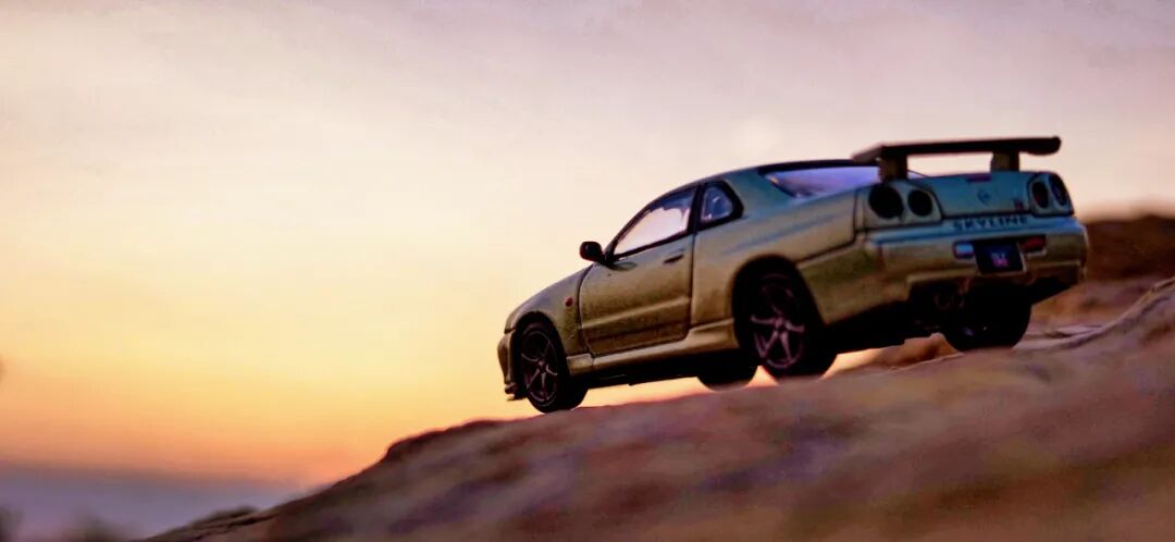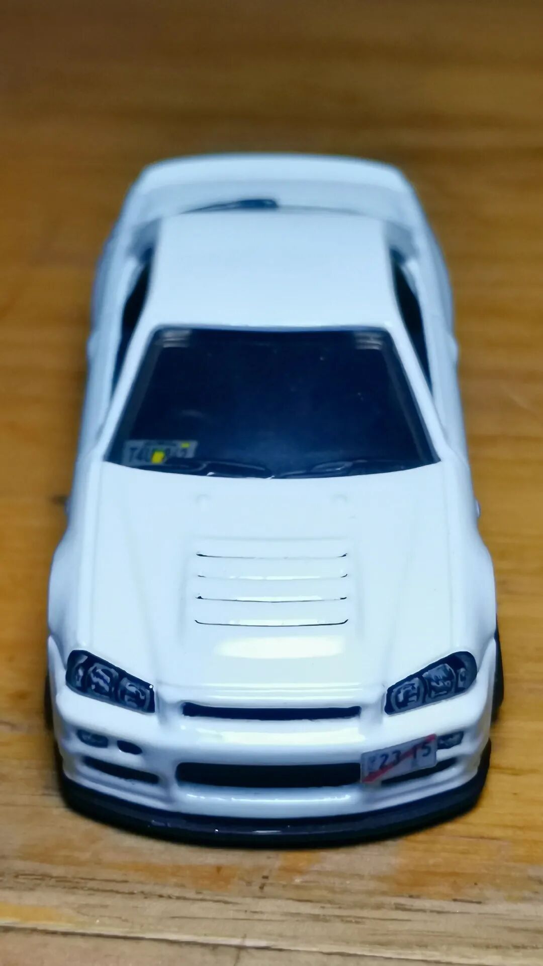 这台R34似乎是出自风火轮的白GT-R套装?尾翼被作者锯掉了改成了小鸭尾?