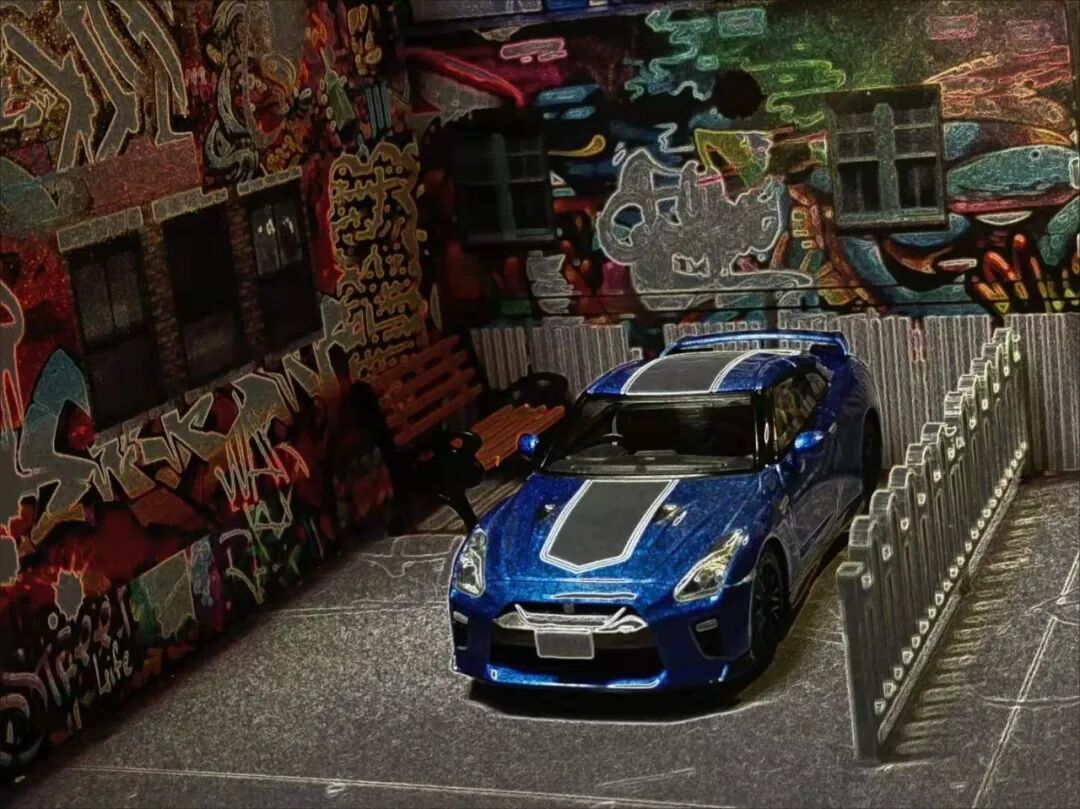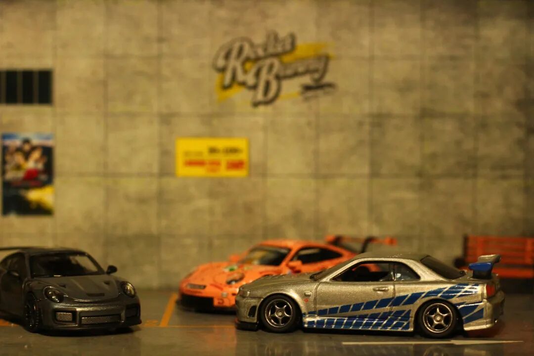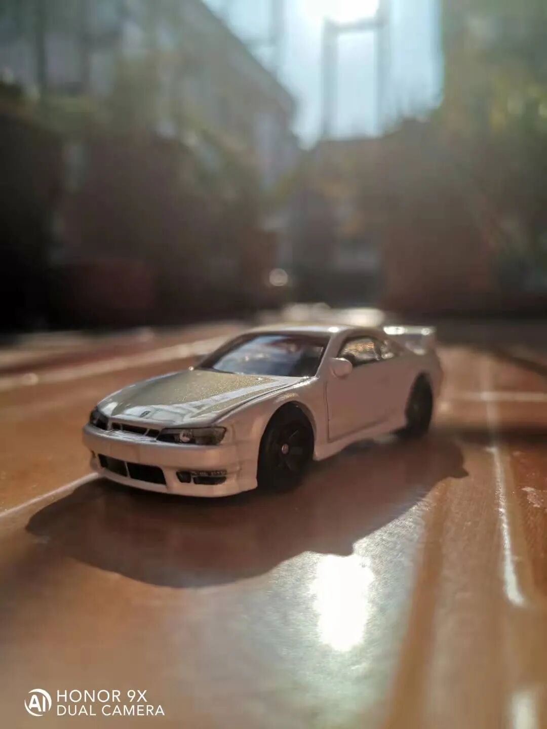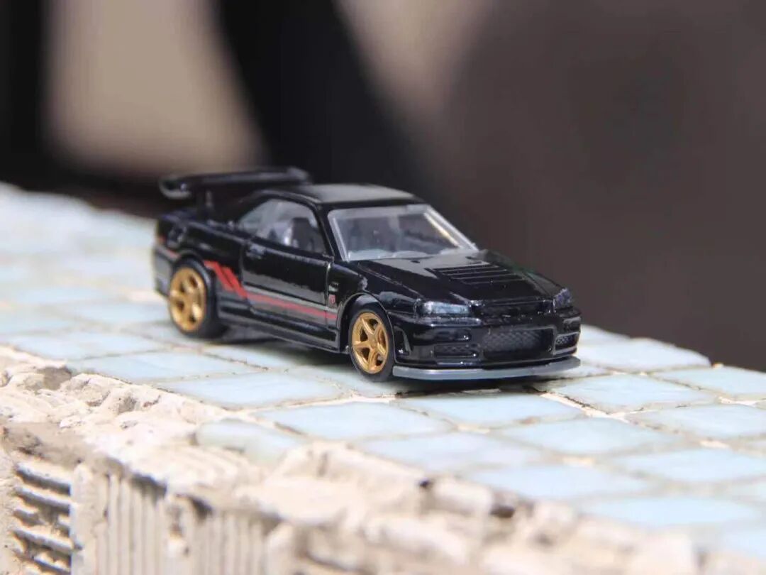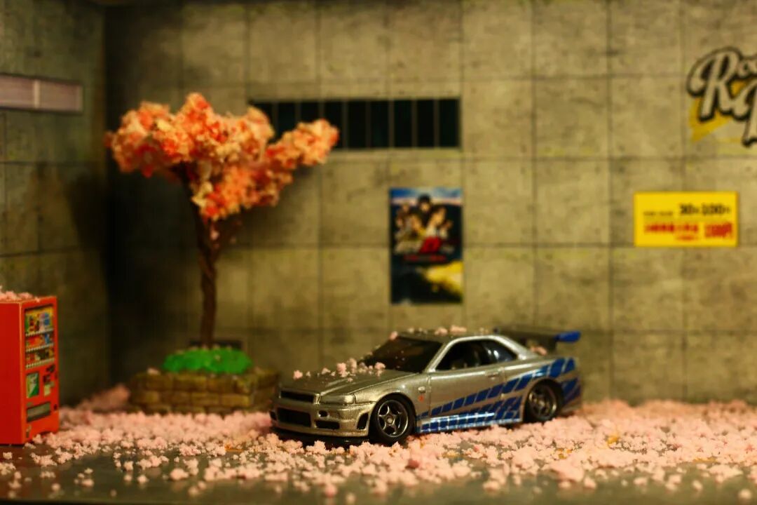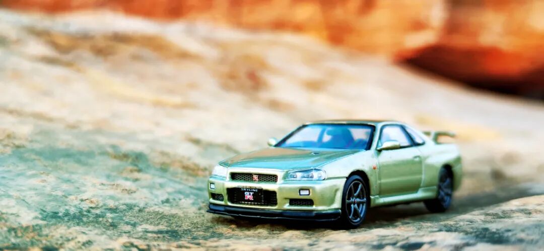 这台R34似乎是出自风火轮的白GT-R套装?尾翼被作者锯掉了改成了小鸭尾?