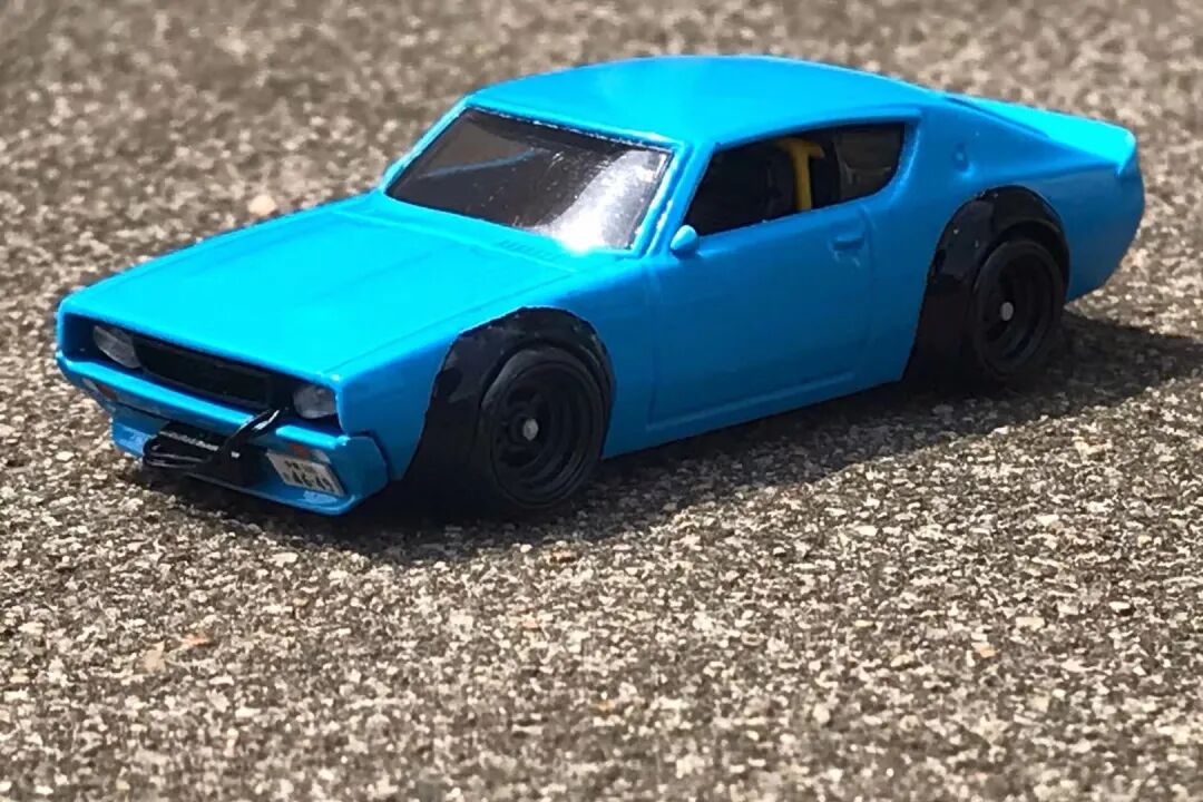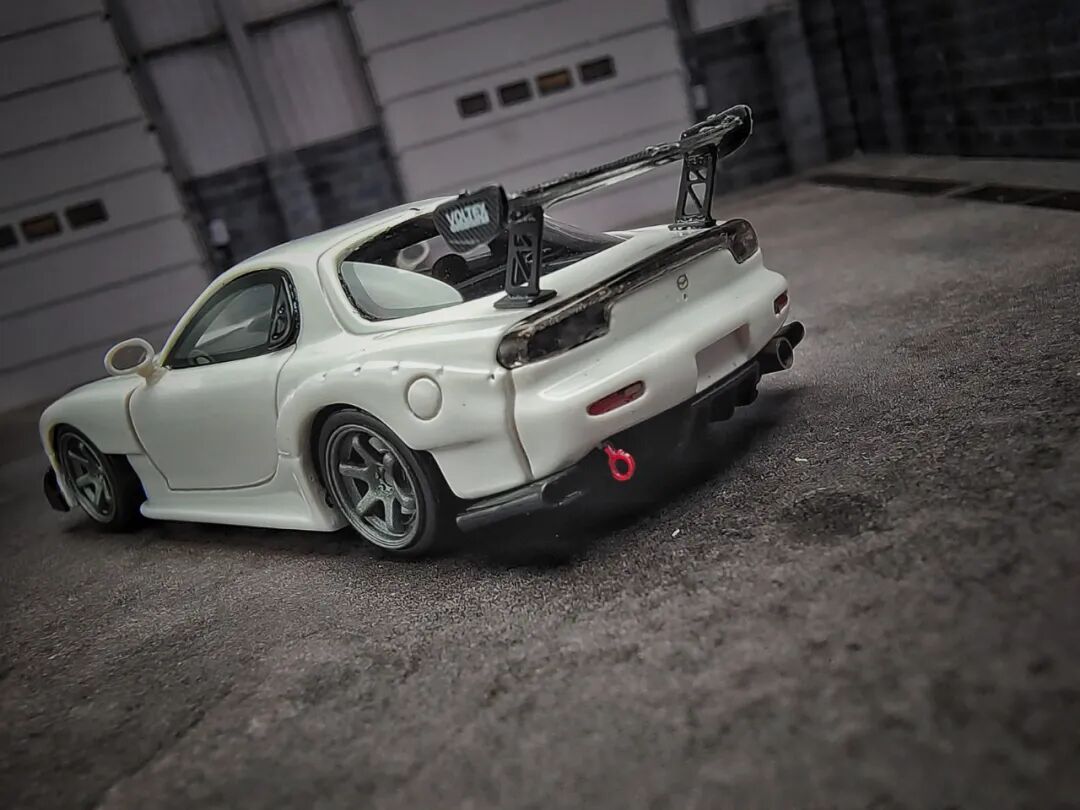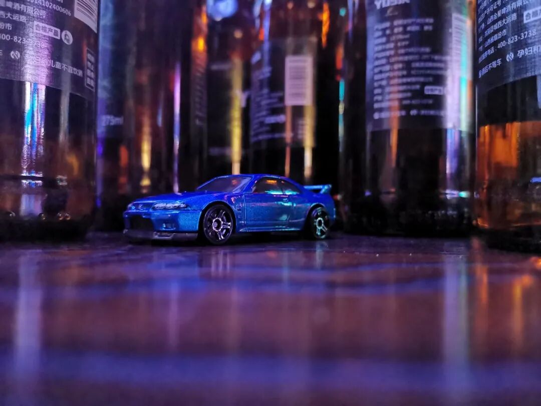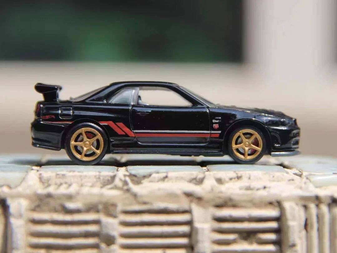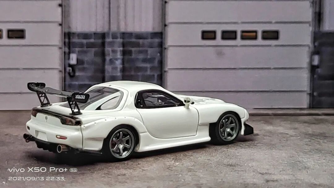 这台R34似乎是出自风火轮的白GT-R套装?尾翼被作者锯掉了改成了小鸭尾?