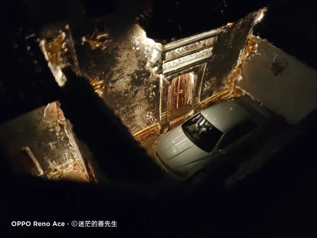 老旧的木屋旁,停放着一台1998年生产的雷克萨斯IS200,这个会发光的木门有点意思。