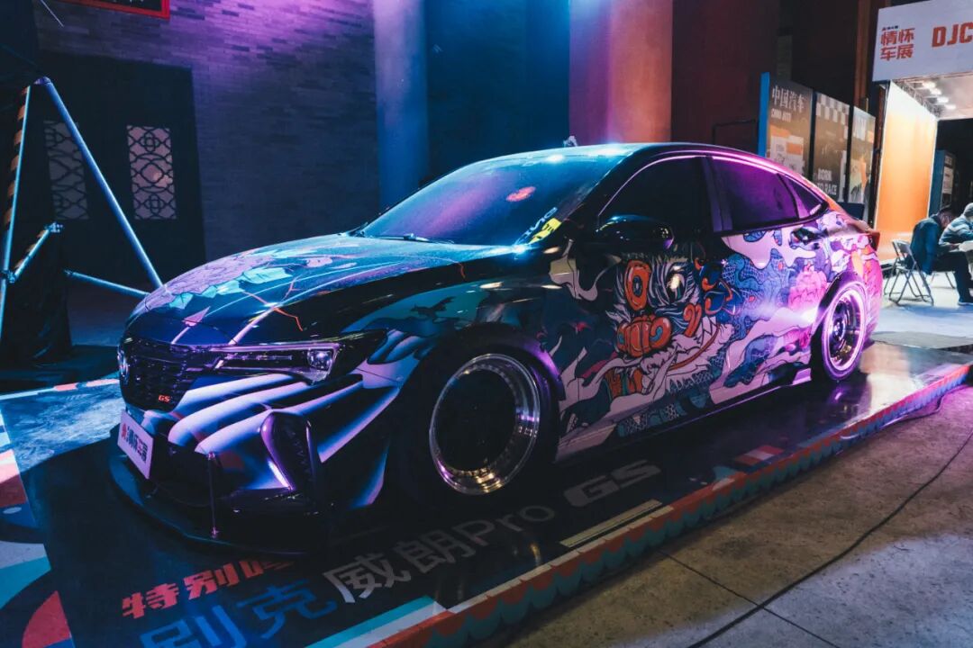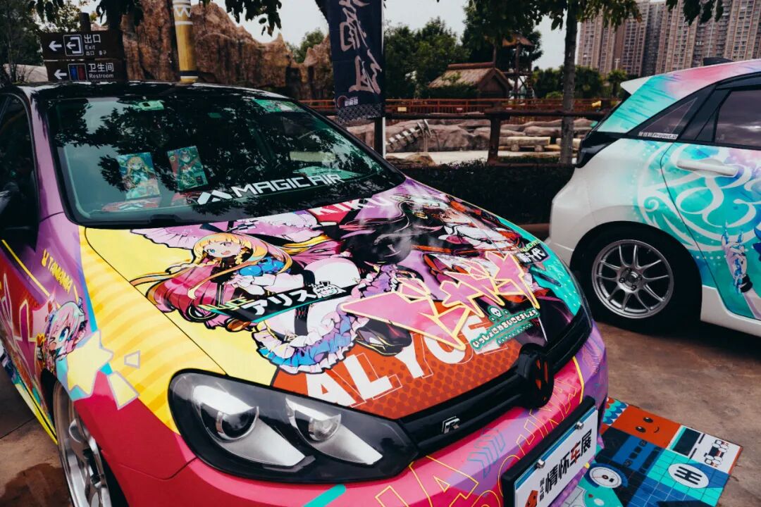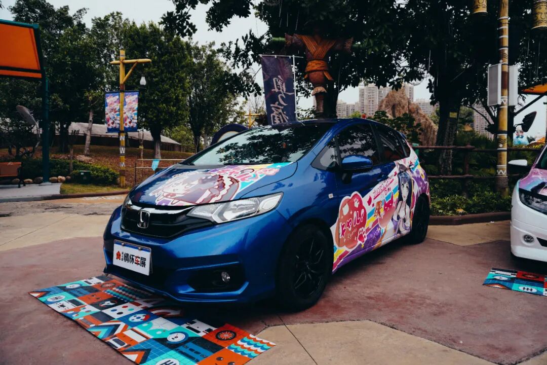 全车的拉花可谓是十分引人注目,即使已经是夜晚。