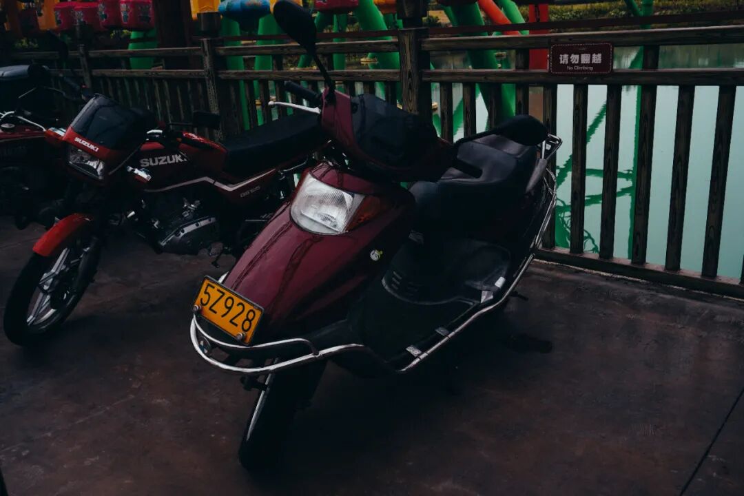 仔细看,由于几乎无风挡的设计,车主还细心地为它配上了一个带目镜的头盔!