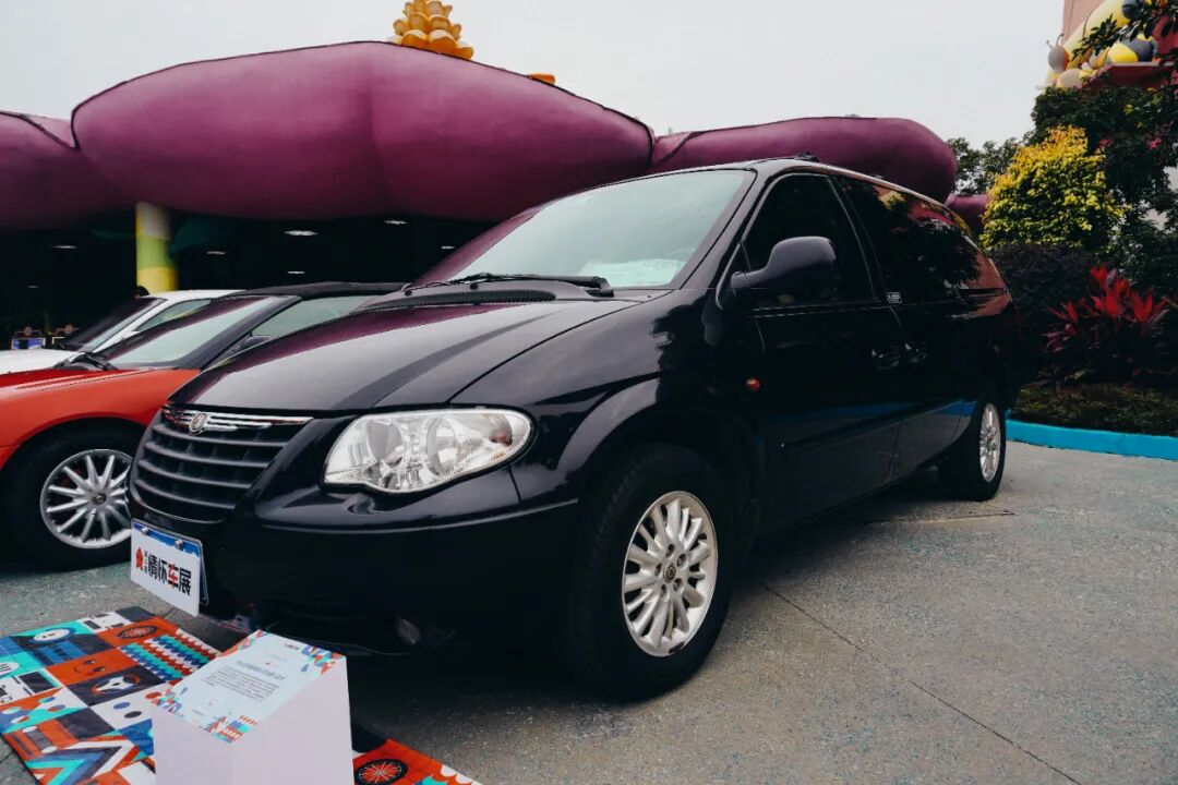 相信许多人看到车头中网就已经认出这是克莱斯勒的著名MPV——大捷龙了吧。一旁则是一台克莱斯勒赛百灵敞篷版,仔细看它的车灯里还有几台车模?!